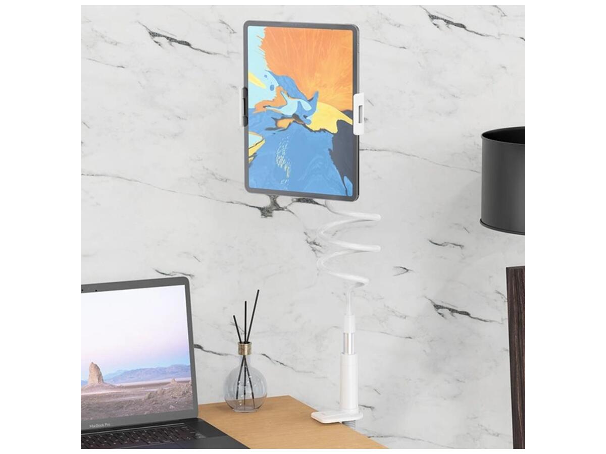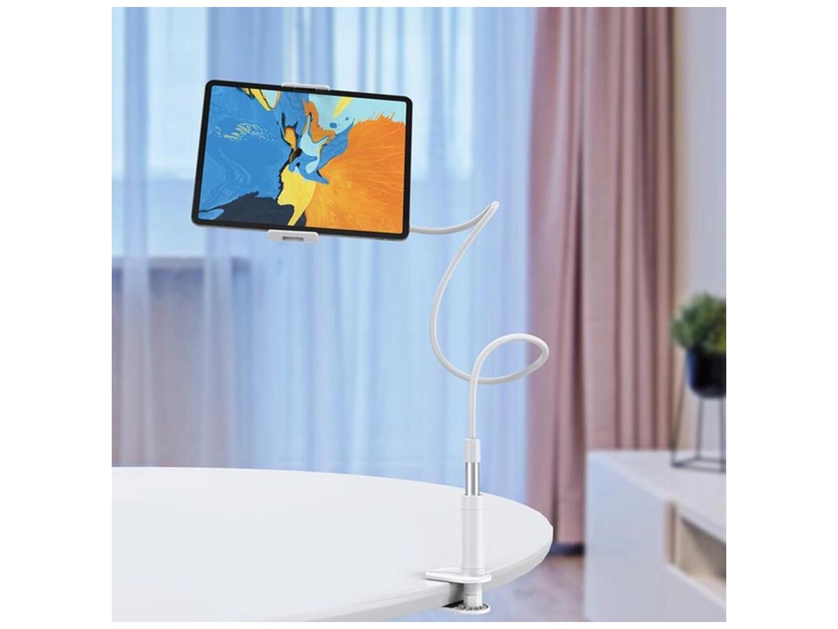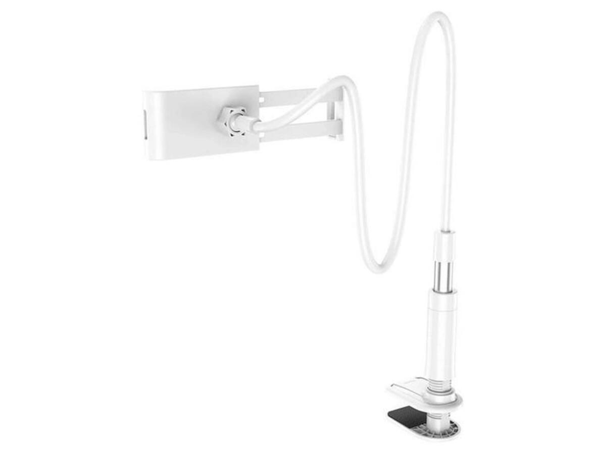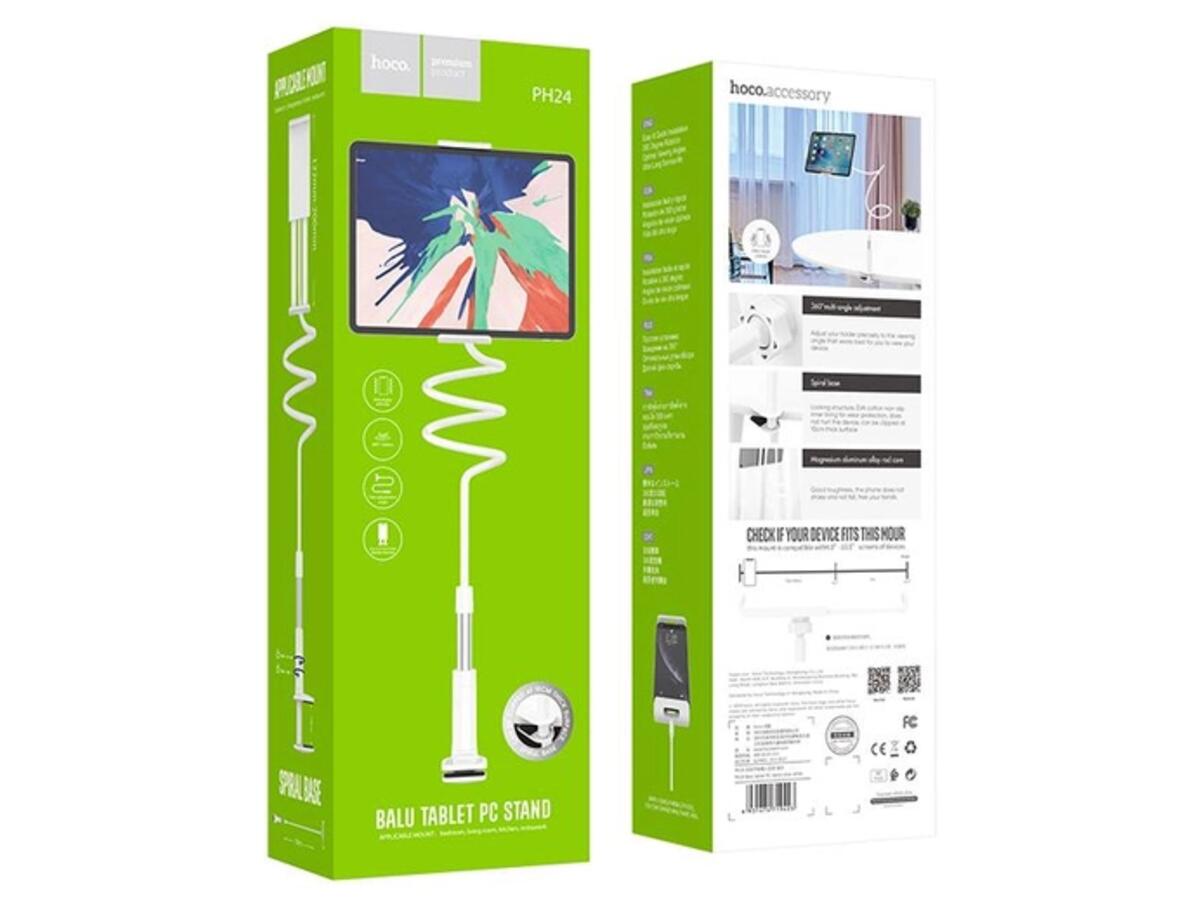 Держатель для телефона Hoco PH24 Balu tablet PC stand - стильный держатель-крепление с возможностью поворота на 360 градусов. Благодаря качественному и мягкому механизму зажима, держатель можно установить не только на деревянные, но и на стеклянные и пластиковые столы. Пластиковый винтовой зажим прочно закрепит штатив на любой плоской поверхности с толщиной стенки до 8 см (стол, стул, полка, спинка кровати, в автомобиле и т.п.). На внутренних поверхностях зажима наклеены мягкие подкладки для более хорошей фиксации и для предотвращения появления царапин на фиксируемой поверхности.
