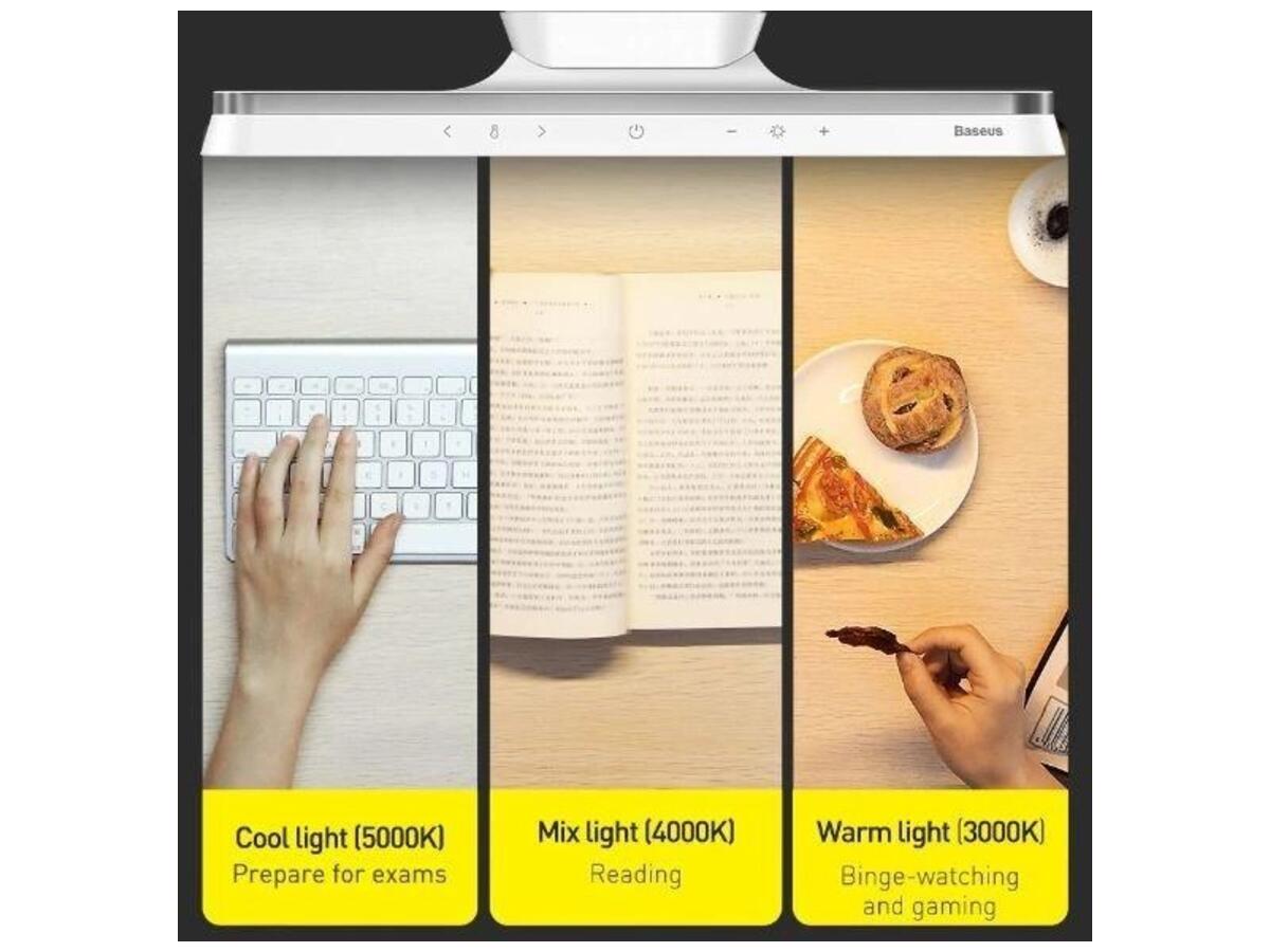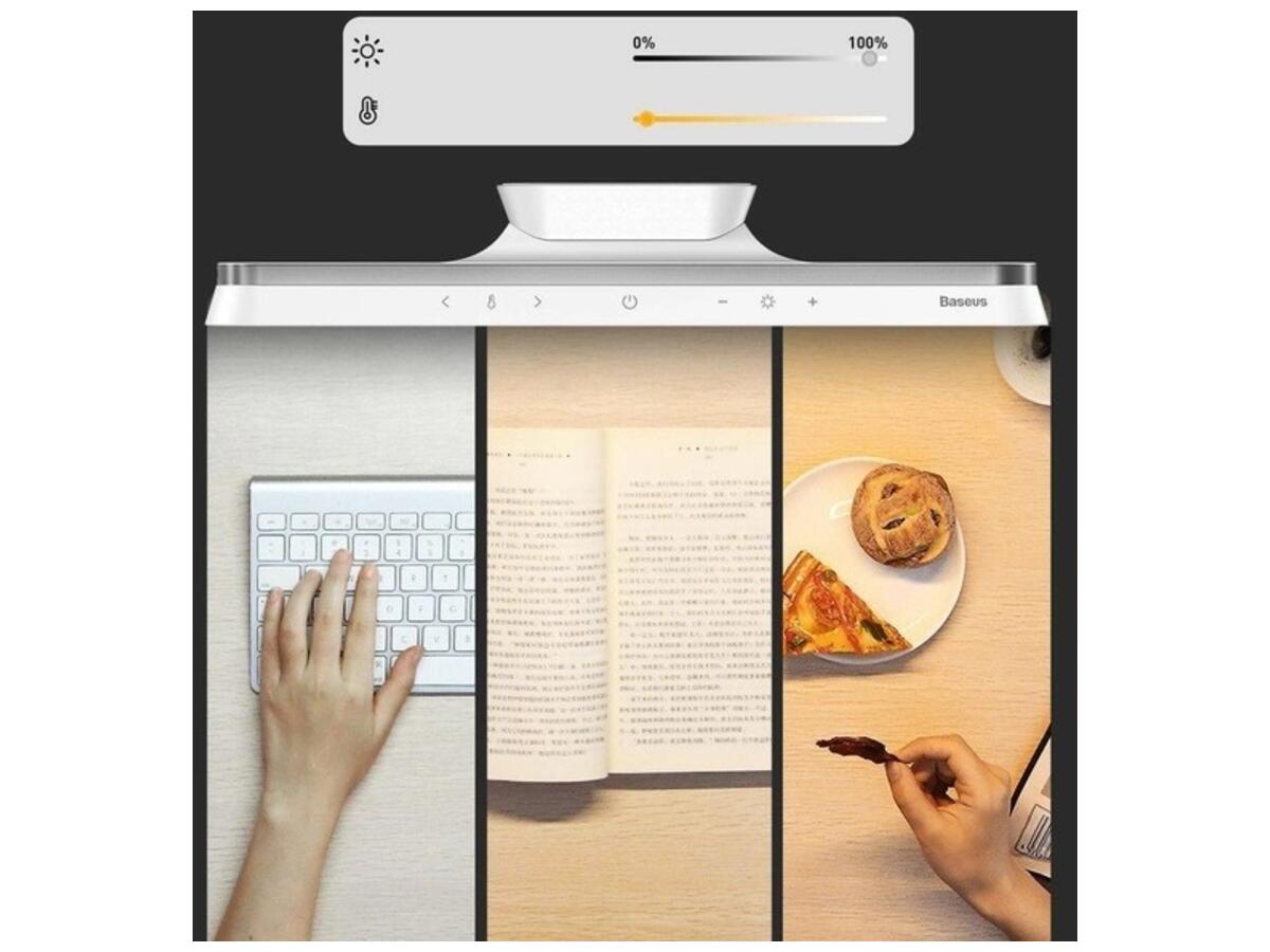 Оптимальное освещение рабочего места должно быть само собой разумеющимся, а сам светильник должен быть адаптирован к текущим условиям. Кроме того, настольная лампа на аккумуляторе Baseus Magnetic Stepless Dimming Charging Desk Lamp имеет плавную регулировку яркости от 0% до 100%.