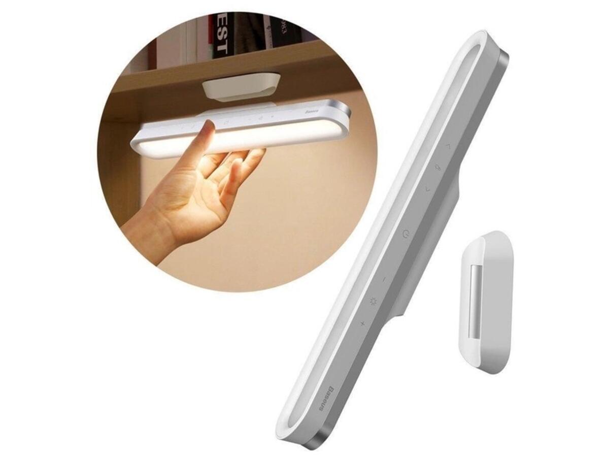 Настольная светодиодная лампа Magnetic Stepless Dimming Charging Desk Lamp – это беспроводной магнитный светодиодный LED светильник c встроенным аккумулятором 2200 mAh и магнитом. Переносную led лампу со встроенным аккумулятором Baseus Magnetic Stepless Dimming Charging Desk Lamp можно прикрепить к любой металлической поверхности или разместить в удобном месте с помощью входящего в комплект магнитного основания. Настольную лампу на аккумуляторе Baseus Magnetic Stepless Dimming Charging Desk Lamp можно использовать как прикроватную лампу, светильник для зеркала или гардероба или даже как портативный фонарик.