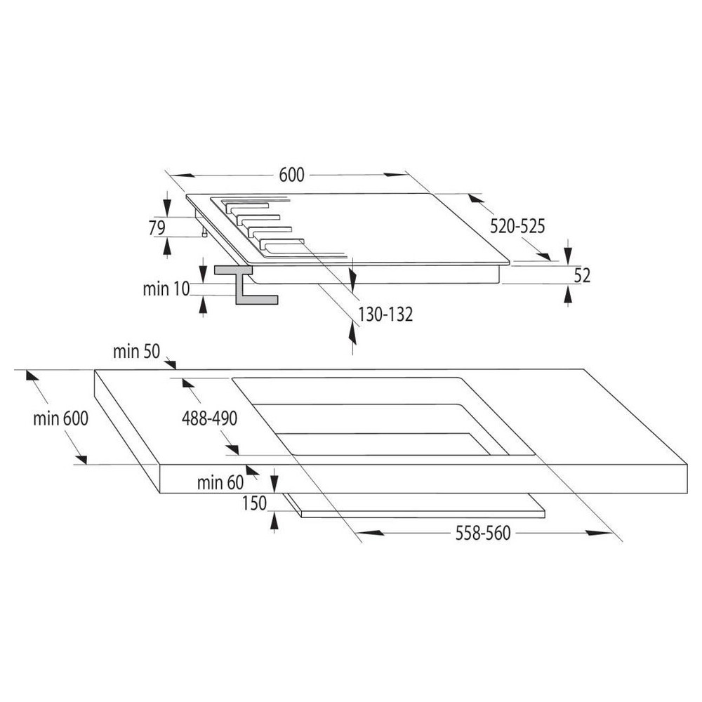 Размер конфорок, мм: 53,7; 2х73,5; 98,5