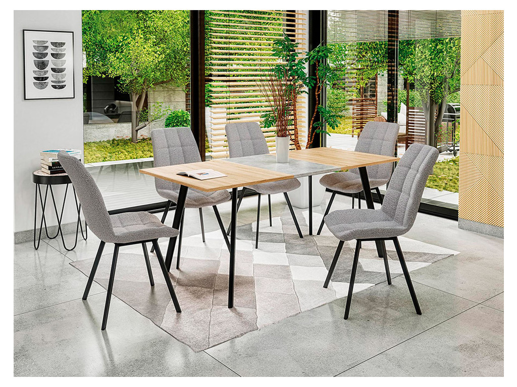 | Краткие характеристики | Производитель: Halmar Высота: 76 см Ширина: 80 см Длина: 120 (160) см Материал столешницы: МДФ ламинированный Материал основания: металл Цвет столешницы: дуб Сонома, пепельный Цвет основания: черный Форма стола: прямоугольный Конструкция: раскладной Количество мест: 4, 6 Стиль: современный, лофт |