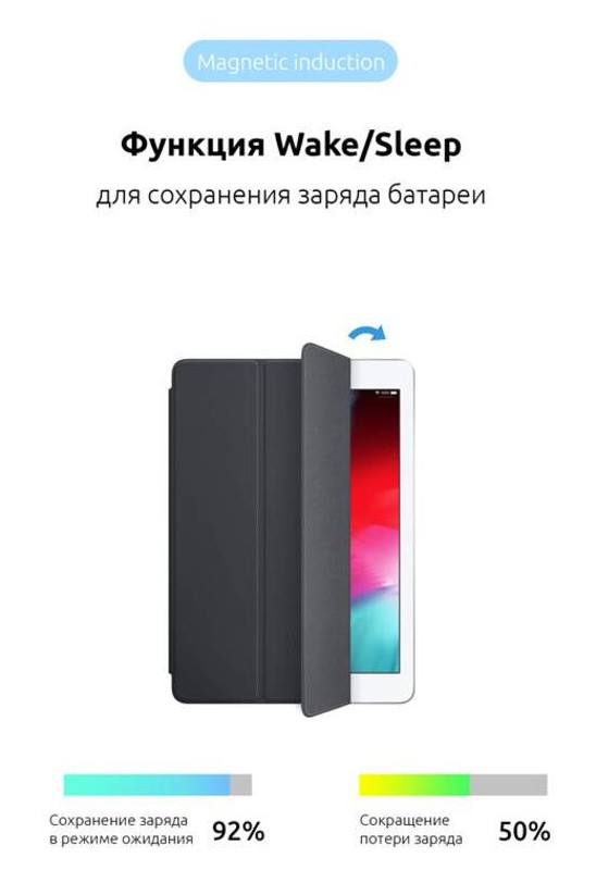 Функция Wake/Sleep, которая реализована при помощи магнитов позволяет значительно продлить использование планшета на одном заряде батареи за счет снижения использования экрана.