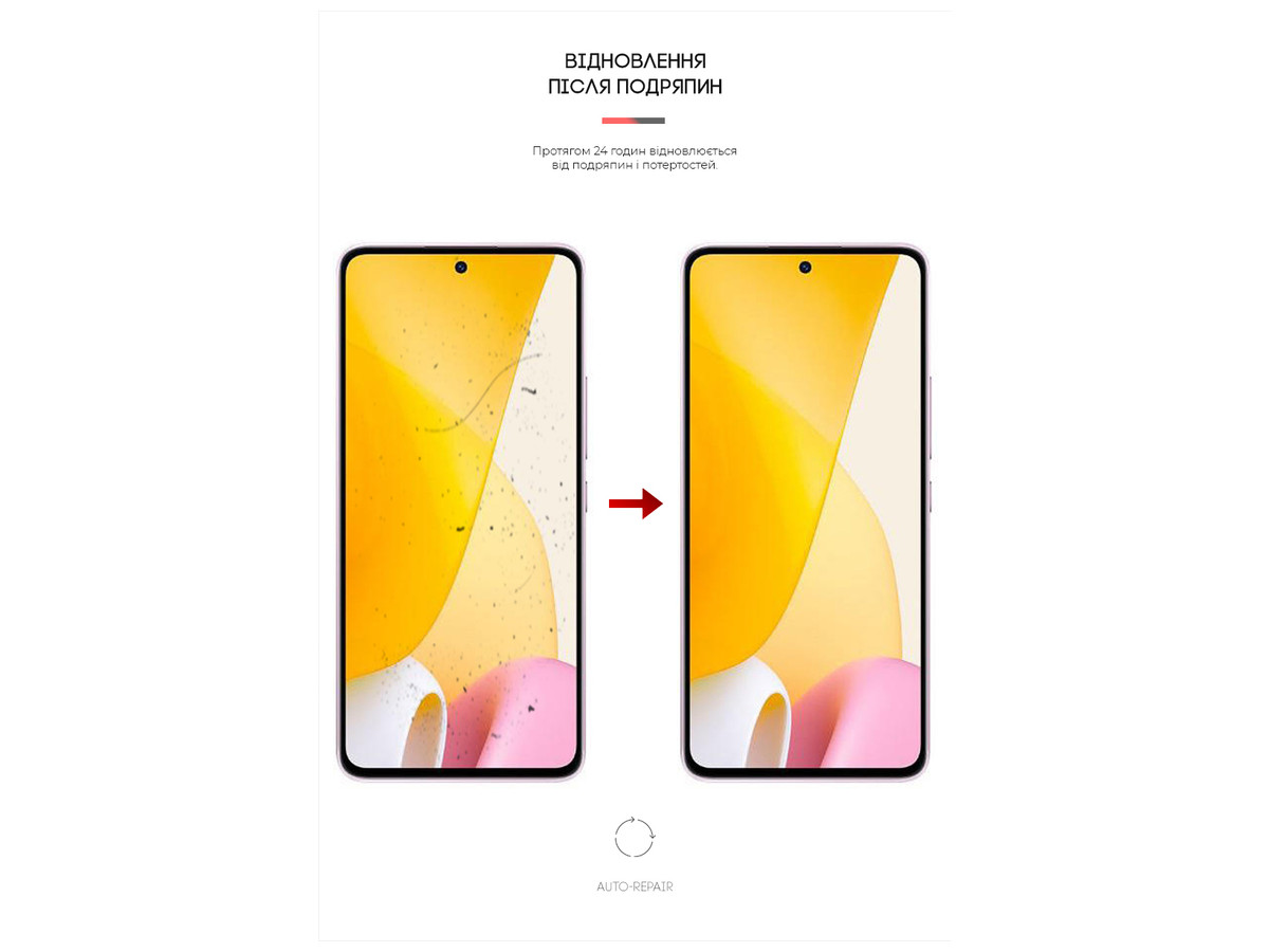 Свойство Auto-Repair - благодаря использованию гидрогеля, пленка восстанавливается от косметических царапин и потертостей в течении 24 часов.