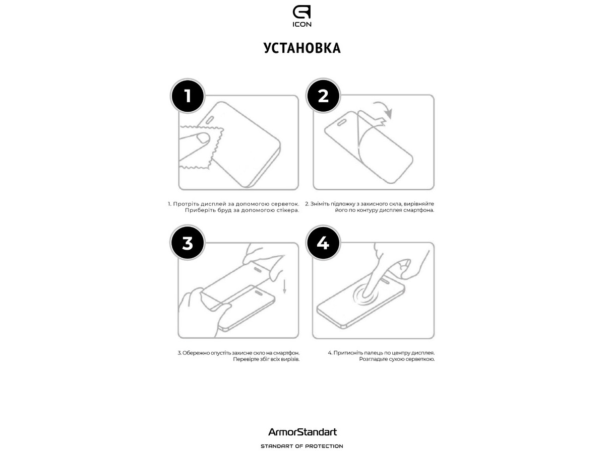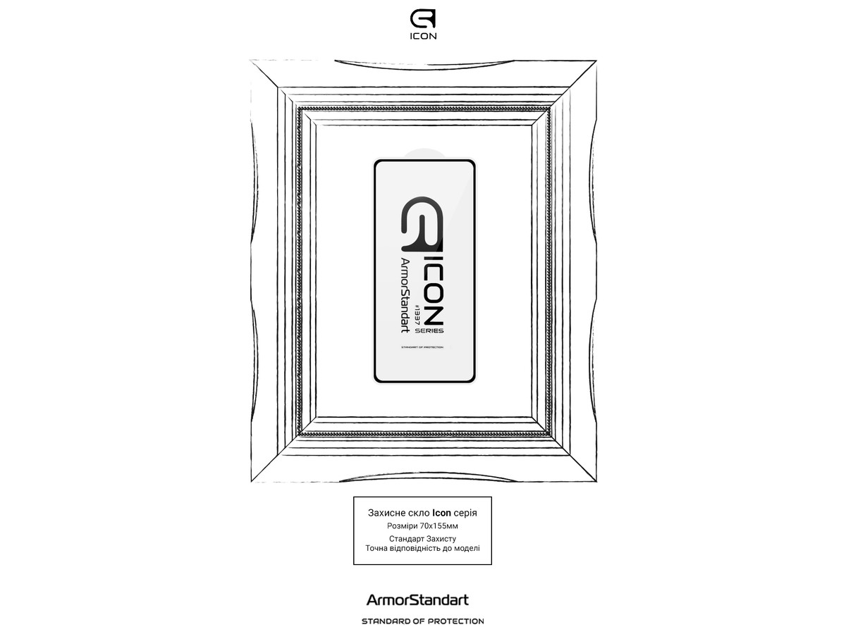 Защитное стекло Armorstandart Icon Series имеет аутентичные габариты и толщину в 0,3 мм. Предусмотрены вырезы под все датчики, камеры и разъемы.