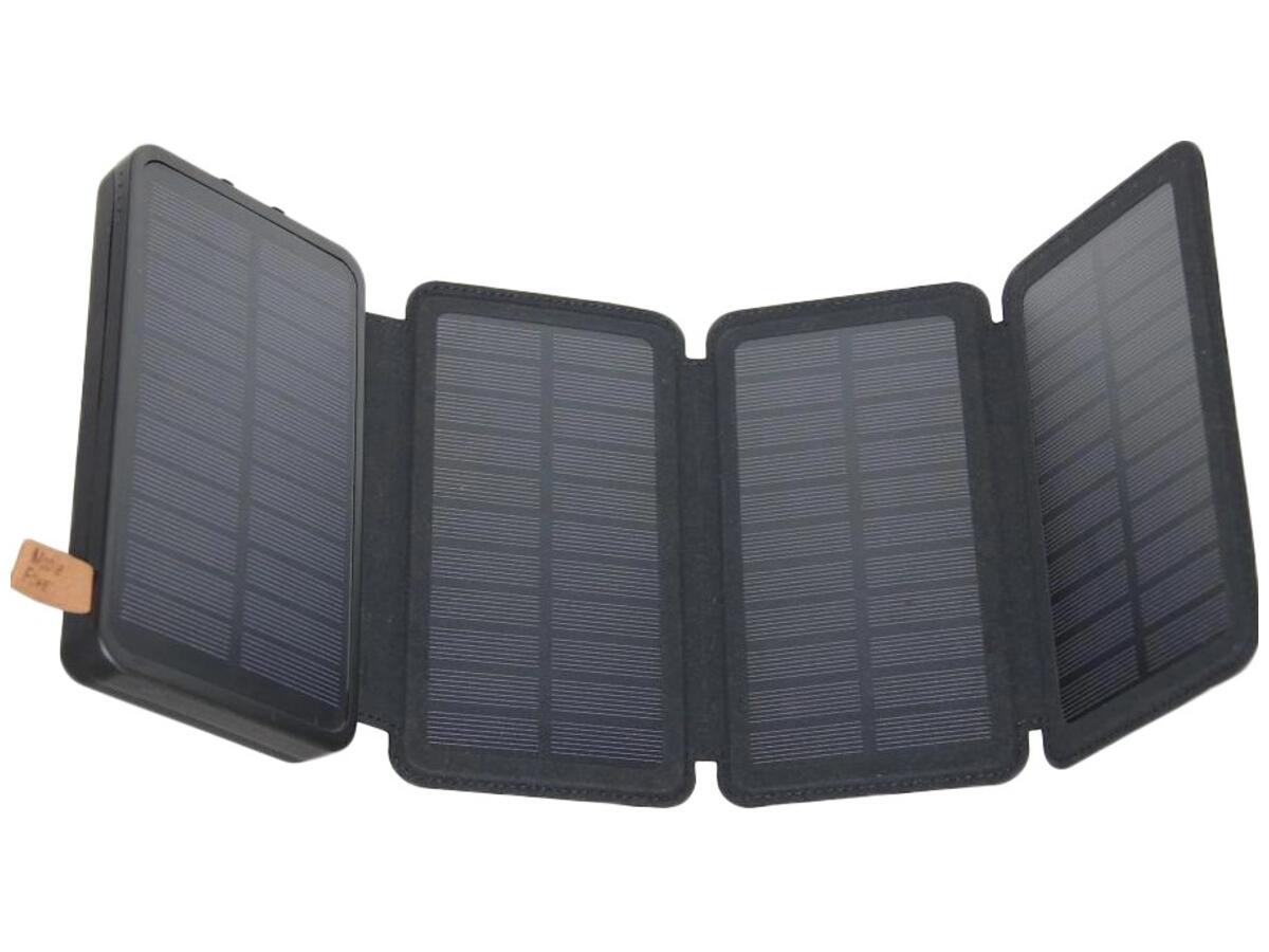 | Краткие характеристики | Емкость: 20000 mAh USB порт: 2 шт. 5V/2,1А Входное напряжение: 5V/2А Функции зарядки: от солнечной панели, micro USB Беспроводная зарядка: да 5V/1А Солнечная панель: 4 шт. 1 встроенная + 3 дополнительных Встроенный фонарик: Да Размер: 155x80x35 мм |