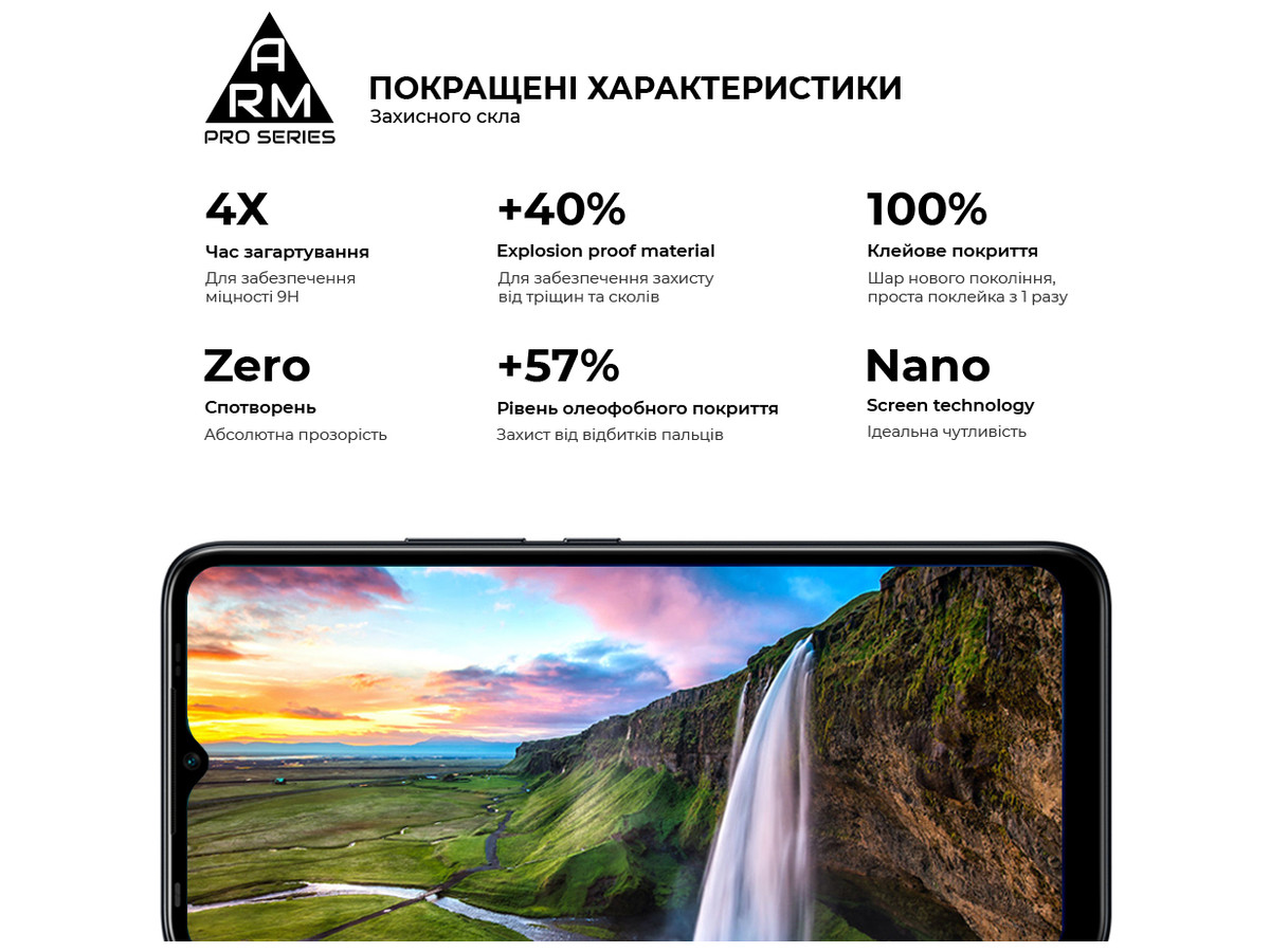 Защитное стекло Armorstandart Pro Series имеет оптимальные габариты и толщину в 0,3 мм. Предусмотрены вырезы под все датчики, камеры и разъемы.