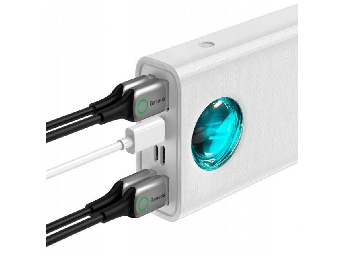 Baseus Amblight 30000mAh 65W – это мощная батарея с огромной емкостью 30000 мАч, стильным внешним видом и многочисленными портами, позволяющими восстанавливать энергию нескольких приборов одновременно. Данный повербанк поддерживает современные стандарты быстрой зарядки – Quick Charge 3.0, Power Delivery 3.0, FCP, SCP, AFC, благодаря которым процесс восстановления заряда Ваших аксессуаров ускоряется в несколько раз. C помощью технологии Power Delivery iPhone X пополняет заряд на 50 процентов всего за полчаса. Обратите внимание, что для этого вам понадобится кабель с поддержкой PD. И с помощью технологии SCP 22.5W, HUAWEI P30 пополняет заряд на 58 процентов тоже всего за полчаса. Также, поддерживает технологию быстрой зарядки для смартфонов Samsung – например Samsung S20 с помощью технологии Ultra 45W Quick Charge пополняет заряд на 100 процентов всего примерно за 57 минут. Гаджет оснащен 7 портами.