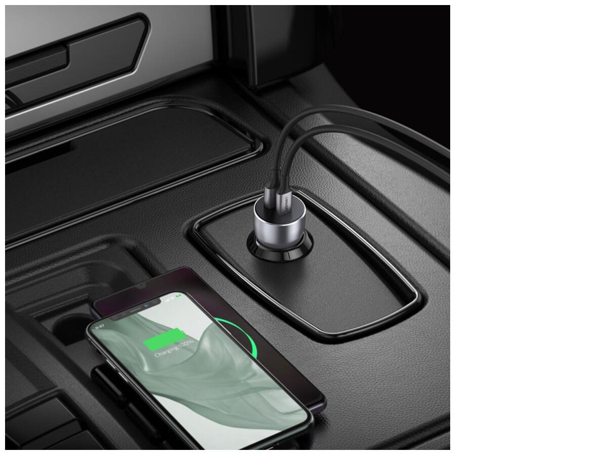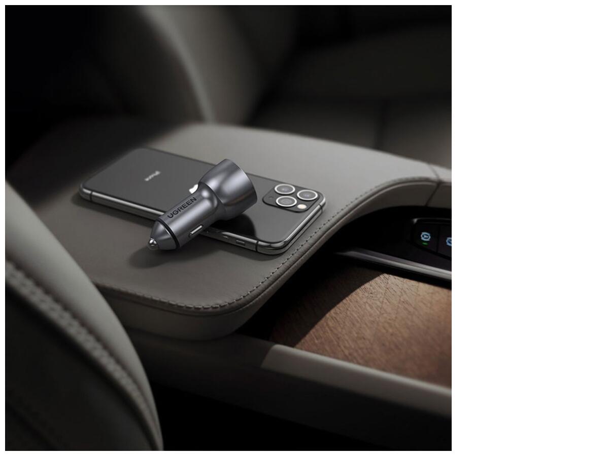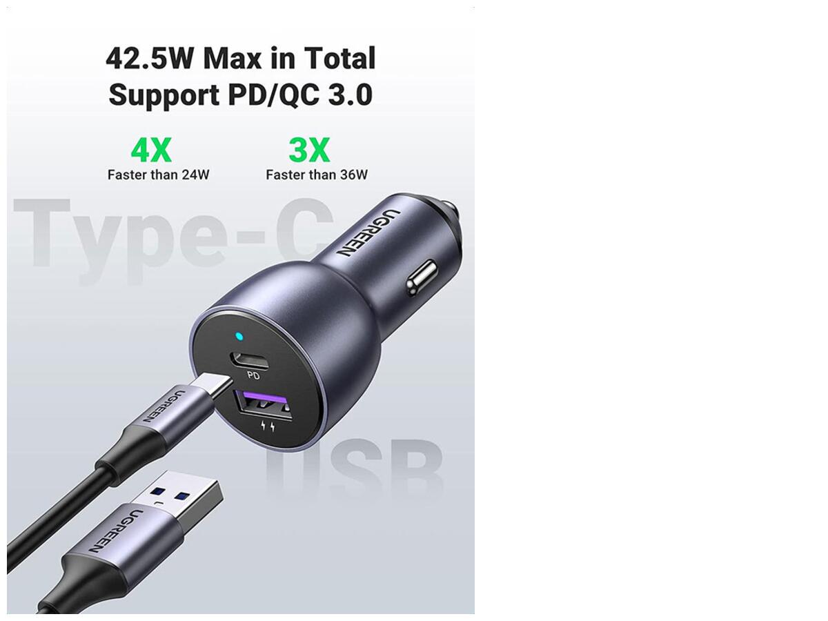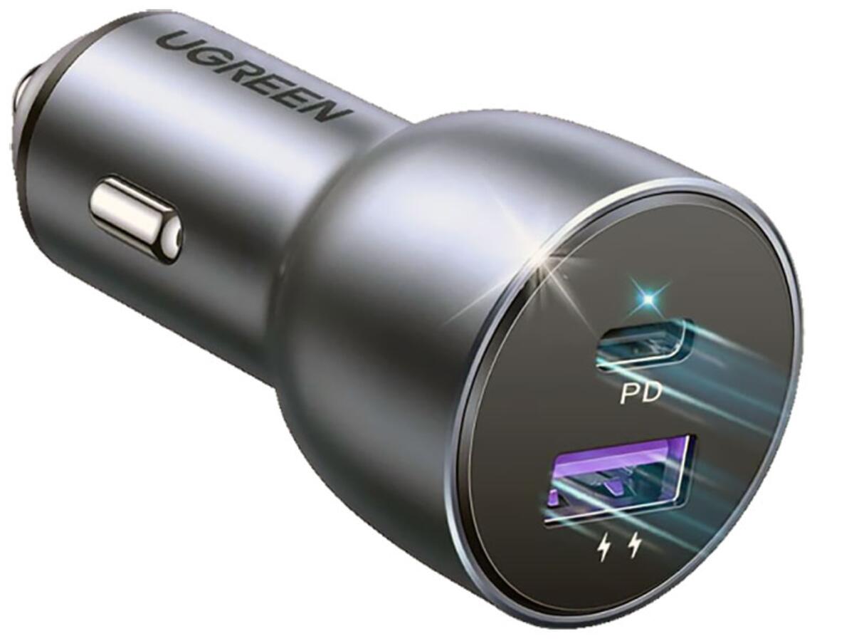 Автозарядка UGREEN QC 3.0 type-C+QC 3.0 USB-A 36W Fast Car Charger Сіра (CD213)
