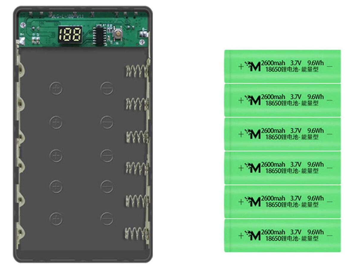 Корпус повербанка с дисплеем для 6 аккумуляторов 18650 - 100126