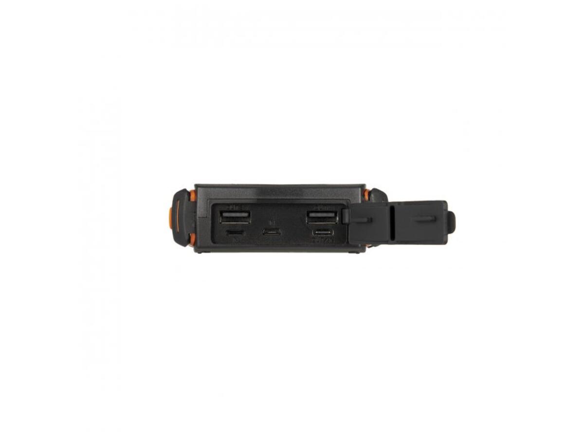 Солнечная панель интегрирована в корпус повербанка, что позволяет заряжать его даже там, где нет доступа к розетке. Это идеальное решение для приключений на природе, путешествиях и кемпингах. Просто разместите повербанк на солнечном месте, и он начнет превращать солнечные лучи в электроэнергию, готовую питать ваши гаджеты. Корпус изготовлен из сверхпрочного пластика и резины, которые надежно защитят повербанк, одновременно это устройство имеет компактные размеры и небольшой вес, что позволяет взять его с собой, как в дорожную сумку, так и в карман. Все функциональные разъемы находятся на одной верхней панели устройства, а кнопка питания – на боковой.