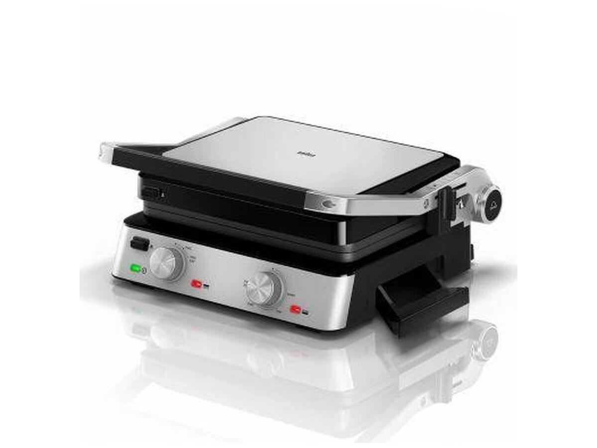 Электрогриль Braun MultiGrill 7 CG-7020 2000 Вт дает возможность готовить широкий ассортимент горячих блюд – от поджаренных гамбургеров, через стейки, свиную шейку, курицу и другое мясо, до овощей гриль и сыра. Нагревательные плиты защищены тефлоновым покрытием, благодаря чему еда не прилипает, а последующая мойка занимает буквально мгновение. Кроме того, покрытие позволяет готовить на гриле без добавления жира, а отверстие для стекания жира делает блюда более здоровыми.