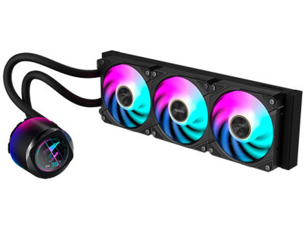 Конструкция этого кулера включает три вентилятора диаметром 120 мм с регулируемой частотой вращения до 2400 об/мин ± 10%, что позволяет эффективно рассеивать тепло даже при самой интенсивной работе системы. Вентиляторы оснащены ARGB подсветкой, которая не только добавляет эстетической привлекательности, но и повышает общую атмосферу компьютерного системного блока. Это дает возможность пользователям настроить подсветку в соответствии с собственными предпочтениями, создавая особый стиль и атмосферу.