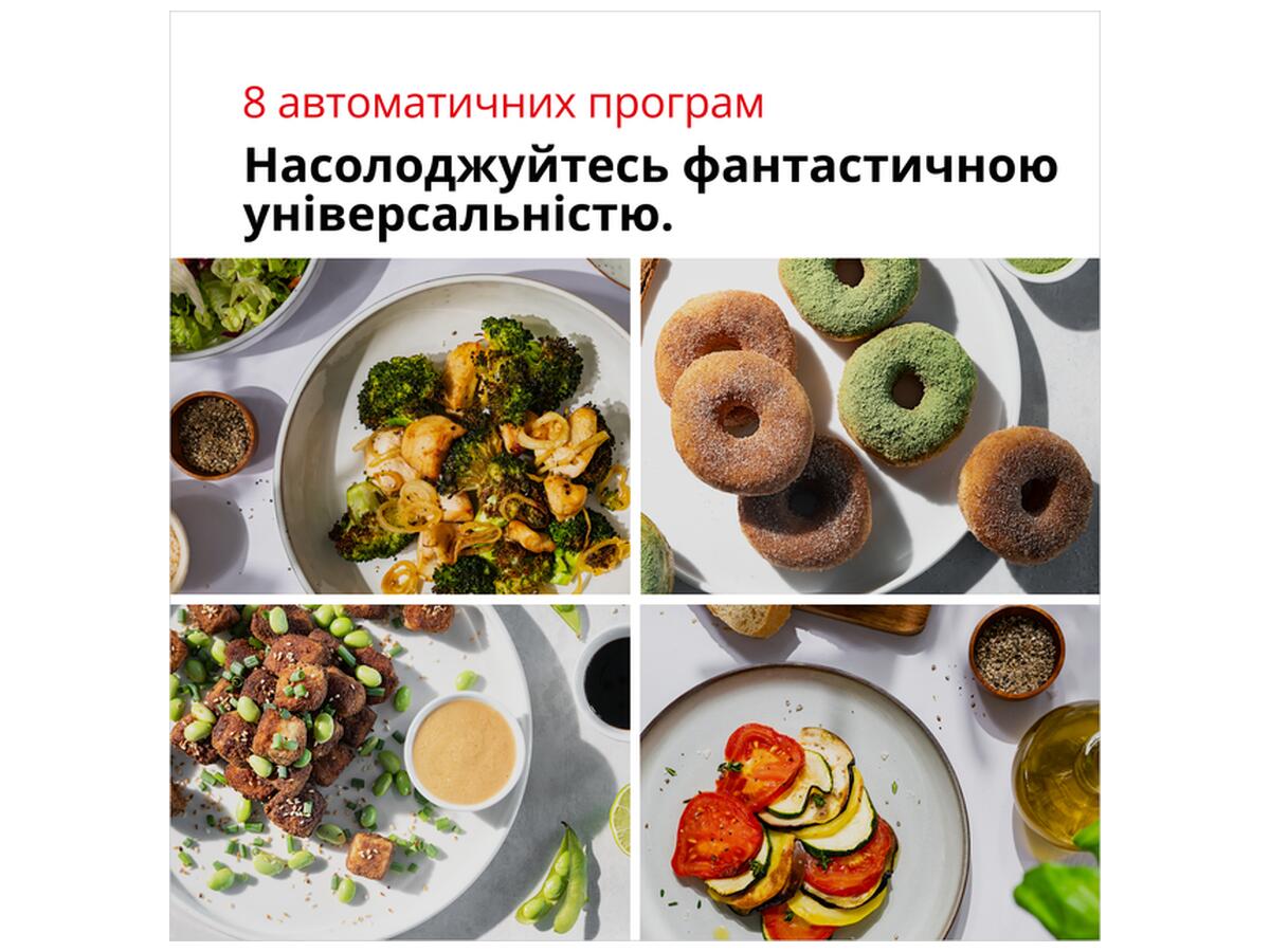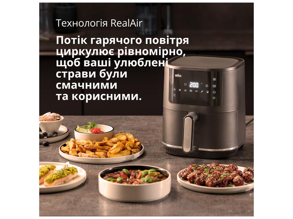 Благодаря инновационной технологии RealAir поток горячего воздуха циркулирует равномерно и позволяет готовить еду с минимальным количеством масла. Таким образом, вы можете наслаждаться едой более здоровым и вкусным способом.