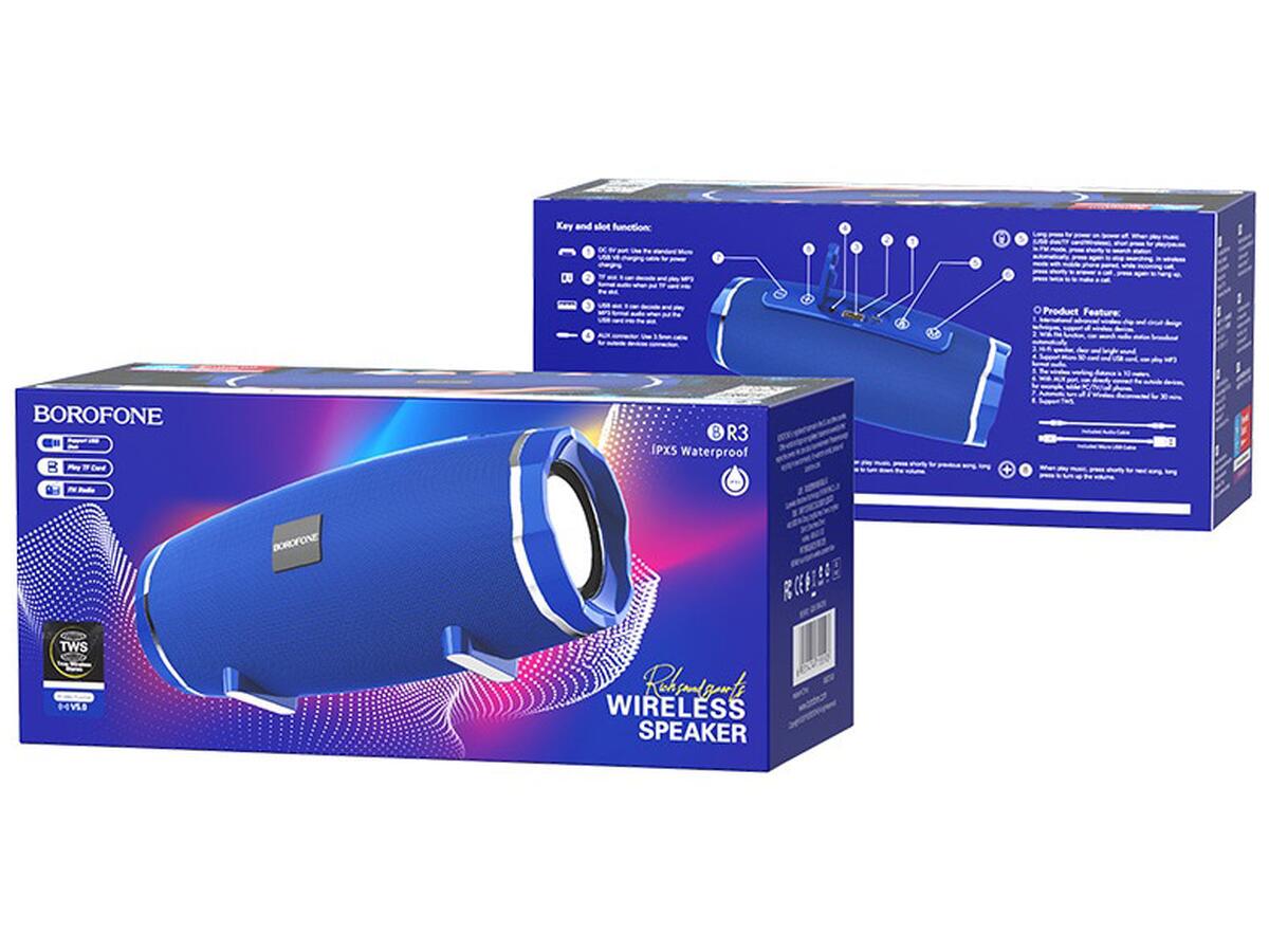BOROFONE BR3 Rich sound портативная колонка, BT V5.0, поддержка беспроводного воспроизведения, с TF карт и USB, батарея 1200мАч.