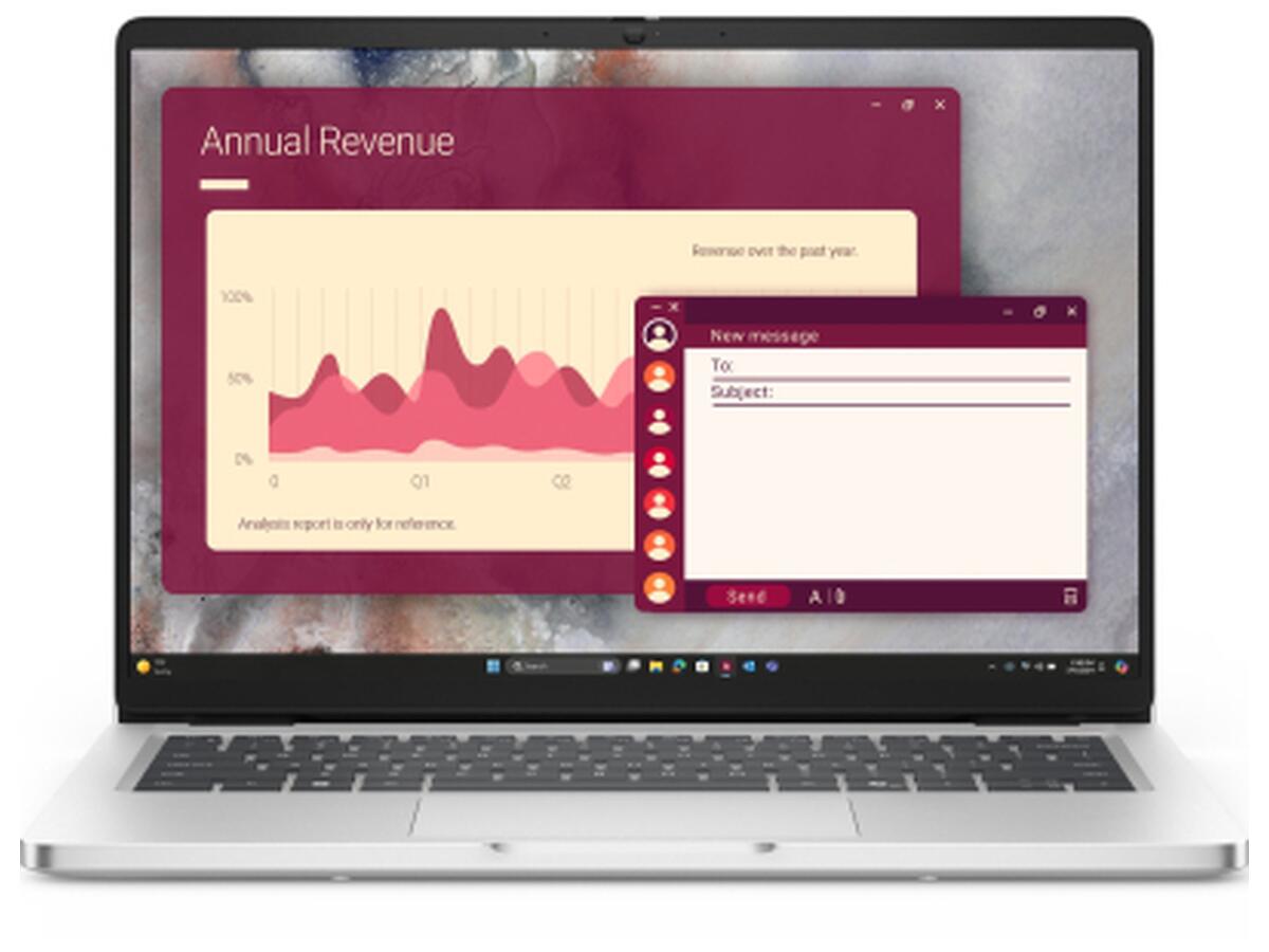Вес устройства всего 1.4 кг и элегантный серебристый корпус делают Dell Pro 14 идеальным спутником в поездках и офисной работе.
