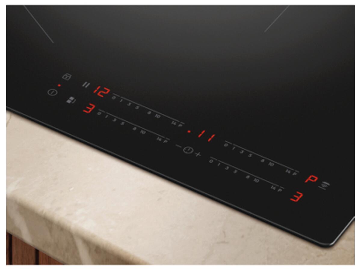 - Беспроводное соединение Hob2Hood® с вытяжкой для автоматической регулировки мощности вентиляции.
