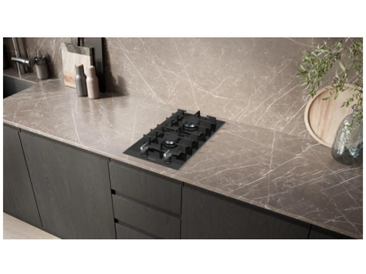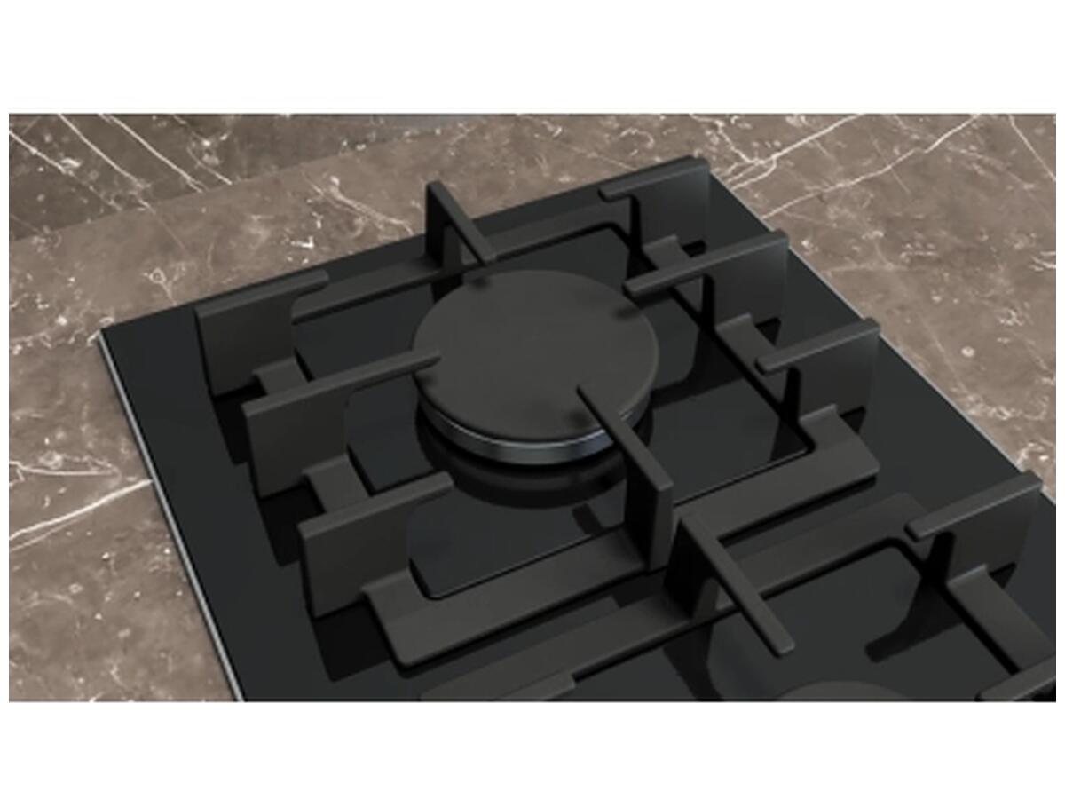 Прочное стеклокерамическое покрытие черного цвета придает изделию изысканный вид и долговечность. Варочная поверхность оснащена удобным механическим управлением с девятью ступенями мощности и функцией газ-контроля для обеспечения безопасности. Электроподжиг в ручках облегчает запуск конфорок, а съемные переключатели способствуют быстрой и удобной чистке.