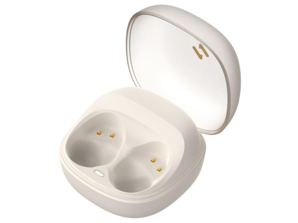 Кейс для зарядки компактный и удобный для переноски, оснащен индикаторами заряда, а в комплекте представлены амбушюры разных размеров для максимального комфорта.