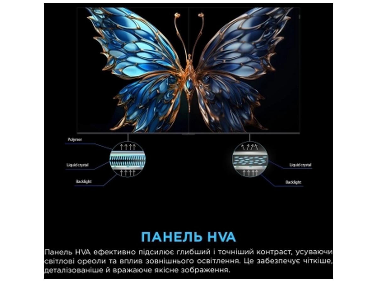 Технологии Dolby Vision, HDR10+ и HLG HDR делают каждую сцену живой и насыщенной, а процессор AiPQ Pro отвечает за интеллектуальную оптимизацию картинки и звука, адаптируя их под различный контент. Экран с матрицей HVA поддерживает широкие углы обзора без потери качества, а система звука с мощностью 35 Вт и поддержкой Dolby Atmos создаёт эффект полного погружения.