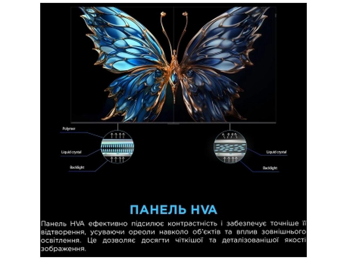 Насладитесь яркими и реалистичными картинками на большом экране диагональю 65 дюймов с разрешением 3840 x 2160 пикселей. Телевизор оснащён HVA-матрицей и прямой LED-подсветкой, которая создаёт глубокие тени и насыщенные цвета, благодаря чему каждый кадр удивляет своей чёткостью и детализацией.