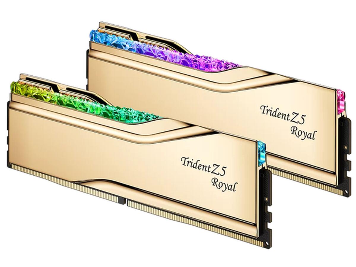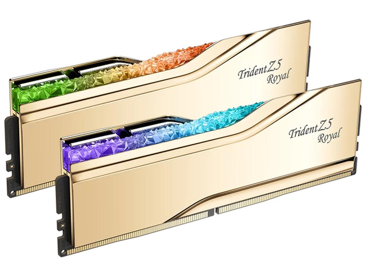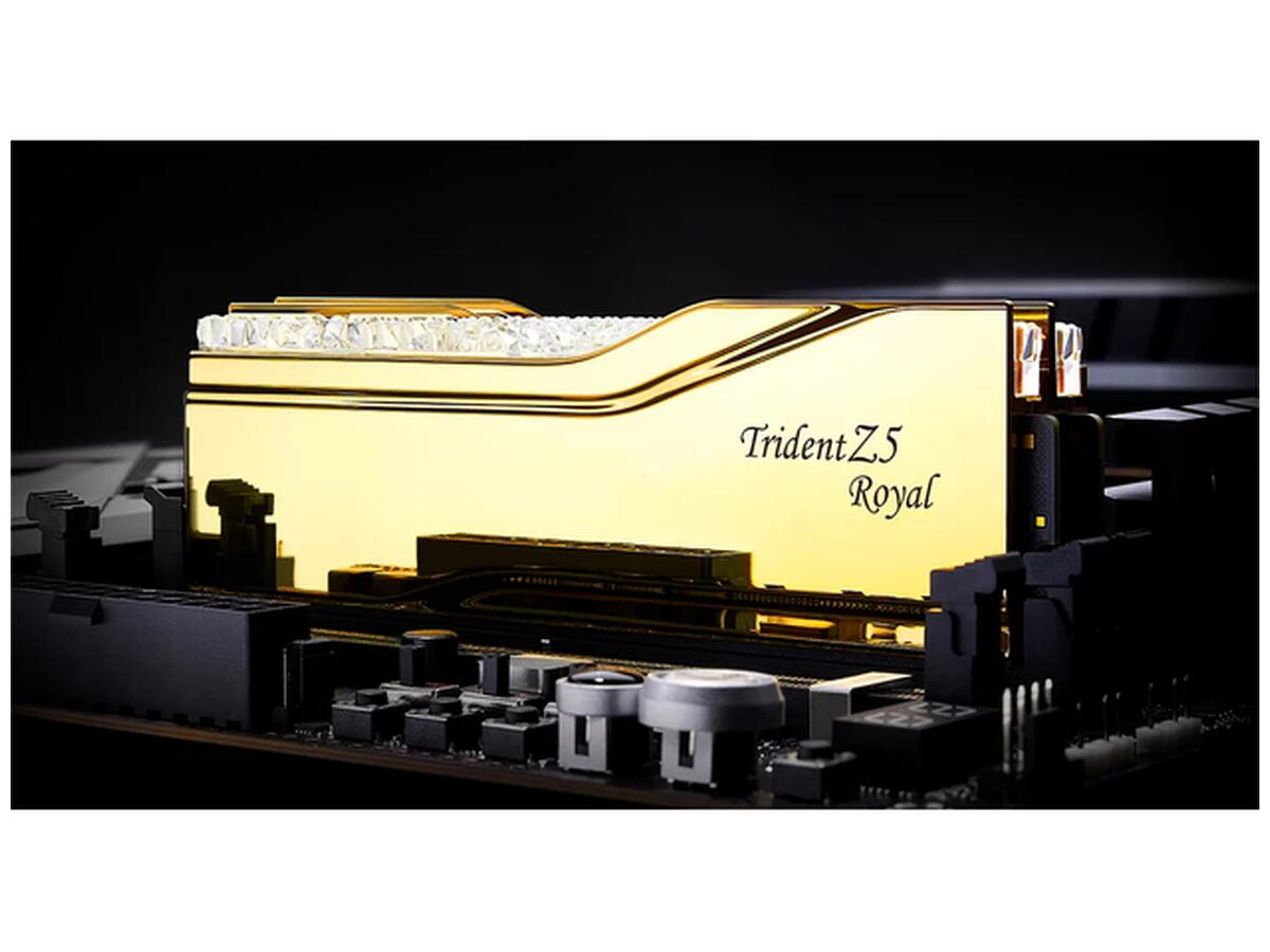 Высококлассный комплект оперативной памяти DDR5 от G.Skill серии Trident Z5 Royal сочетает в себе элегантный дизайн и максимально эффективную работу на платформах Intel. Корпус памяти украшен уникальной кристаллической панелью, которая подчеркивает живую RGB-подсветку с возможностью настройки. Солидные алюминиевые радиаторы с гальваническим золотистым покрытием надежно отводят тепло и придают модулю благородный вид.