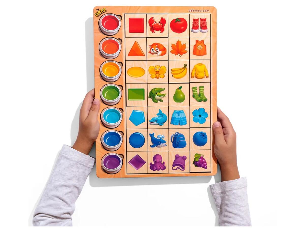 Кроме основной задачи сортировки по цвету, элементы пазла можно использовать для различных игр, таких как "Мемори" или "5-й лишний", что расширяет игровой процесс и стимулирует мышление и память малыша.