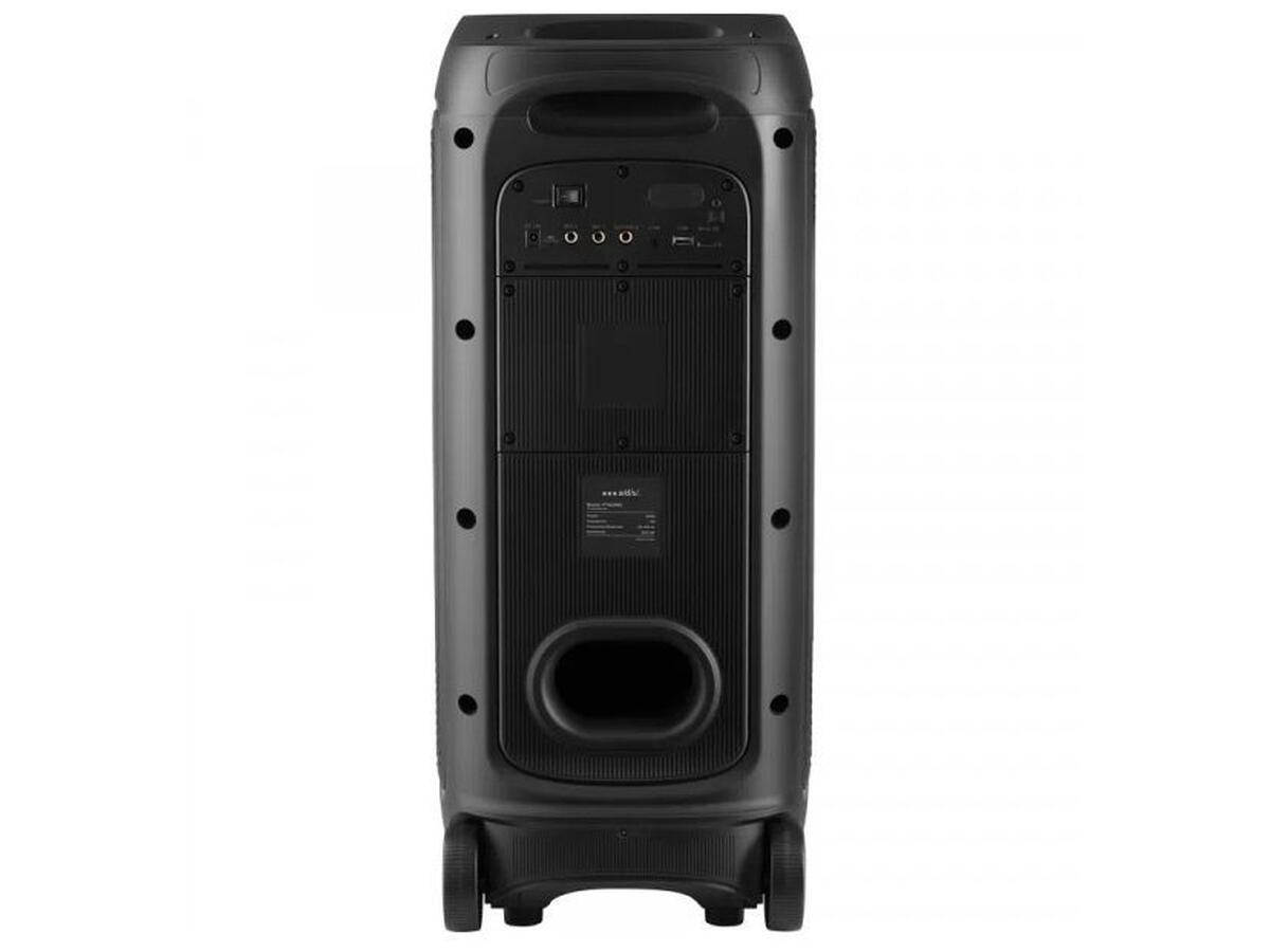 Система оснащена разъемами для подключения микрофонов с регулировкой громкости и эффектами эхо, что делает устройство отличным выбором для караоке-вечеринок. Для удобства управления предусмотрен беспроводной пульт дистанционного управления.