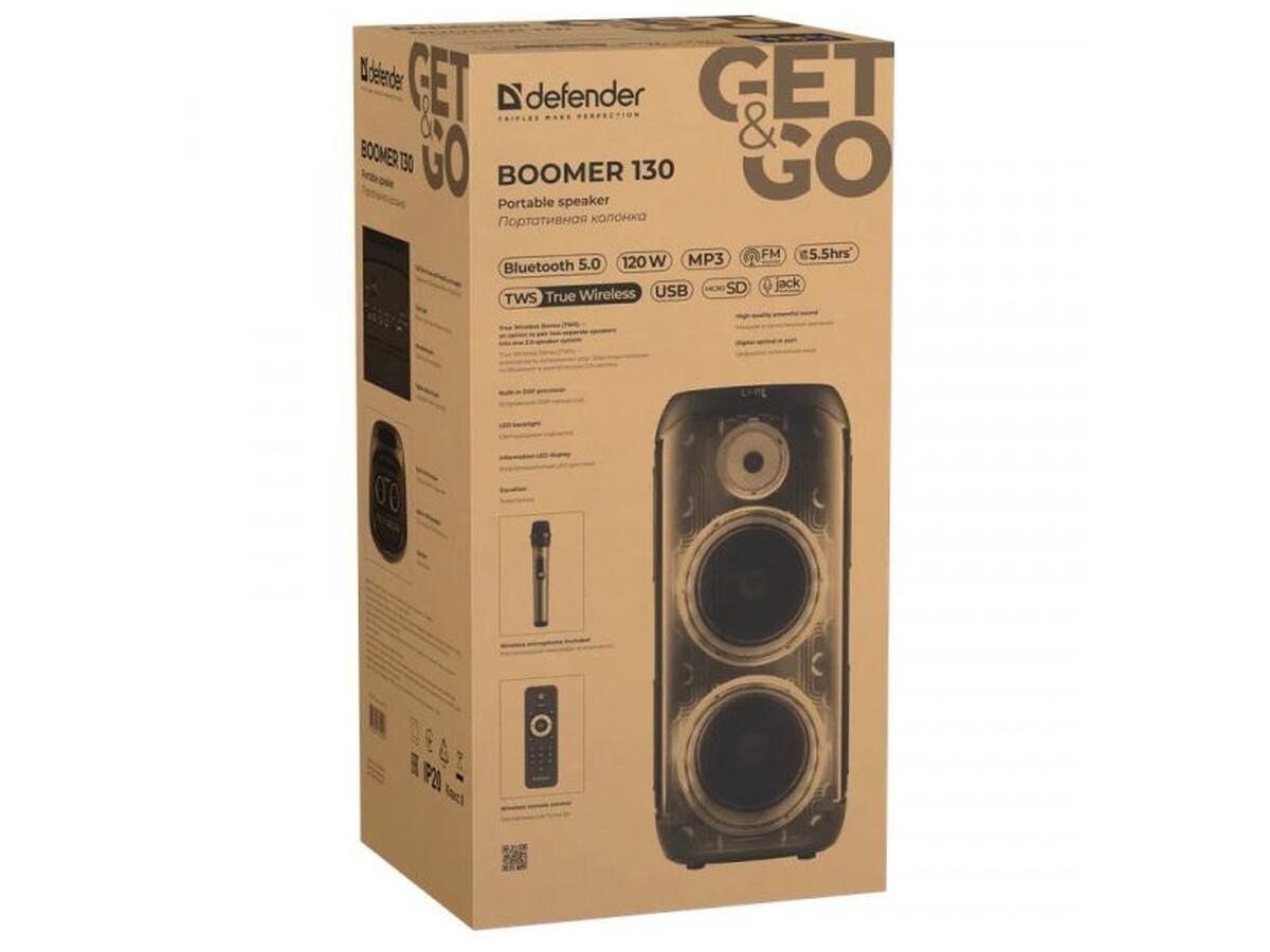 Defender Boomer 130 — это мощная напольная акустическая Bluetooth-система с современными функциональными возможностями. Устройство оснащено яркой LED-подсветкой и информативным LED-дисплеем, который обеспечивает отличную читаемость в любых условиях освещения.