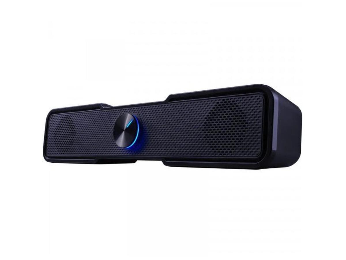 Саундбар оснащен удобным регулятором громкости с LED-подсветкой на передней панели, который также служит кнопкой включения и выключения. Питание осуществляется через USB, что упрощает подключение – достаточно USB-порта на вашем устройстве. Для передачи аудиосигнала предусмотрены интерфейсы Bluetooth, USB и разъем mini Jack 3.5 мм.