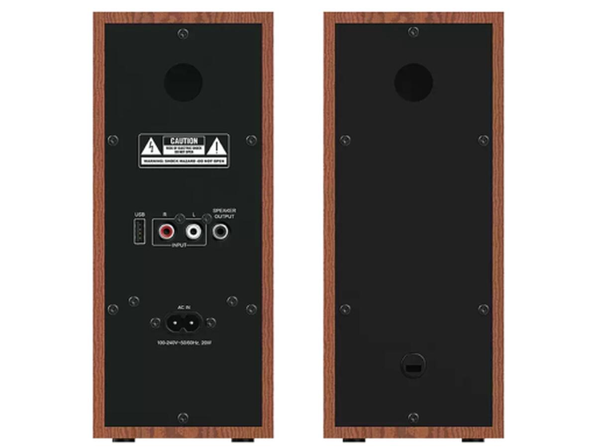 Система поддерживает беспроводное подключение через Bluetooth 5.3, а также оснащена USB-портом и разъемами mini Jack 3.5 mm и RCA, что позволяет легко подключать различные источники звука. Мощность 20 Вт и чувствительность 90 дБ обеспечивают насыщенное звучание на дому или в офисе.