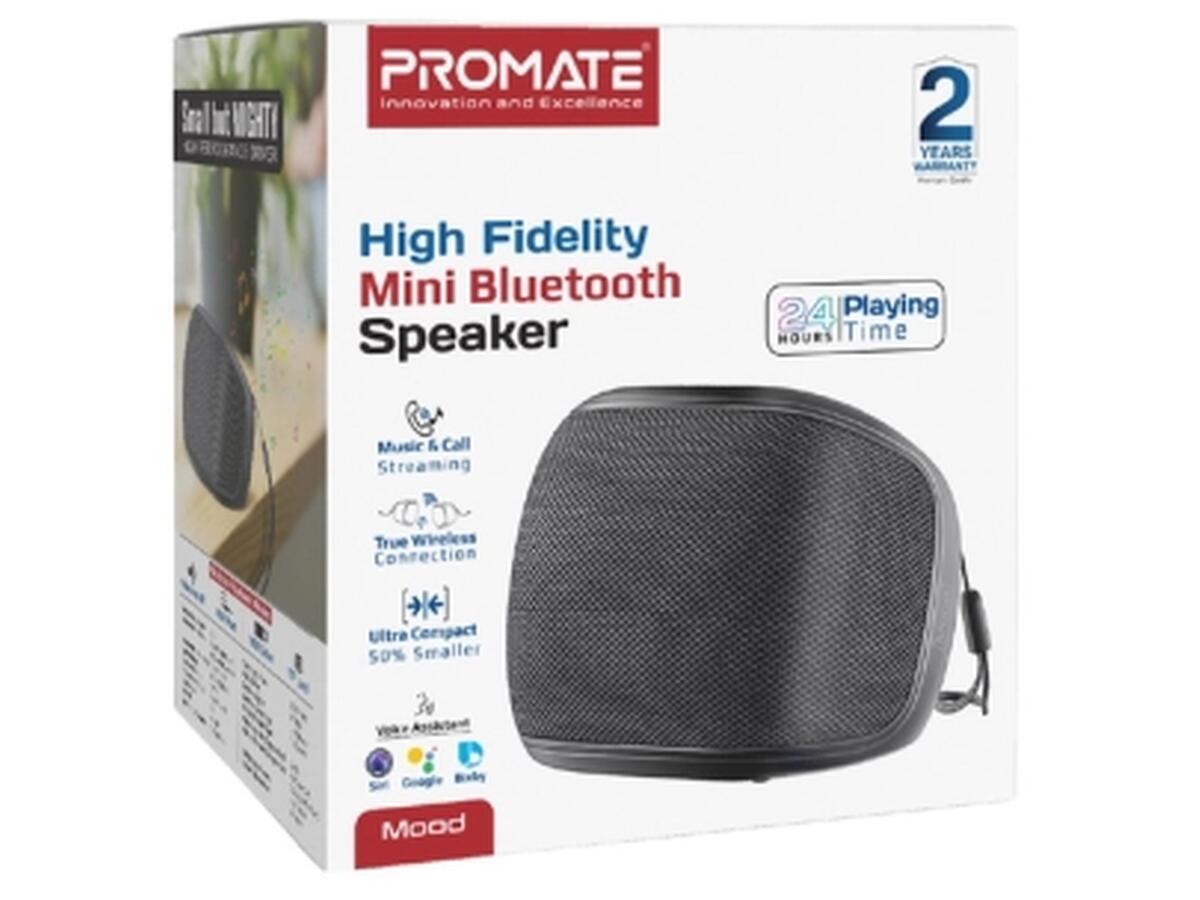 Promate Mood поддерживает разнообразные способы воспроизведения музыки: от Bluetooth до карт памяти microSD и USB-накопителей. Для удобства общения встроен микрофон, а корпус с защитой от влаги и пыли обеспечивает надёжность использования на улице. Элегантный дизайн с текстильным покрытием и удобной петлёй делает колонку стильным аксессуаром и надежным спутником в походах и путешествиях.