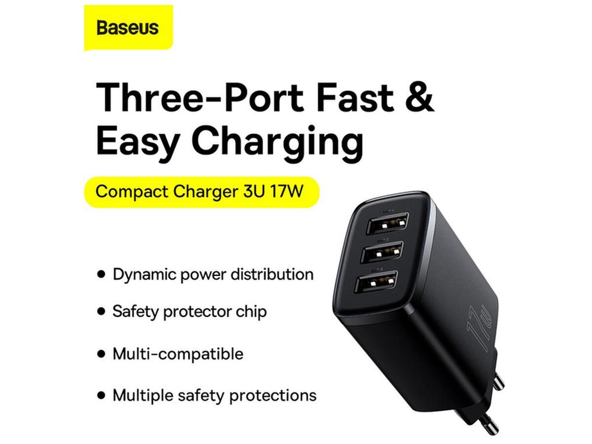 Адаптер мережевий Baseus Compact Charger 3U 17W EU (CCXJ020102) чорний