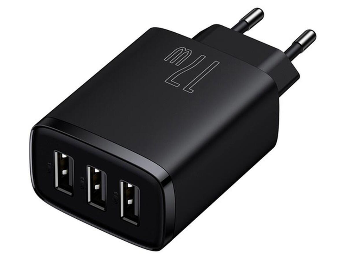Адаптер сетевой Baseus Compact Charger 3U 17W EU |3USB QC 3.4A| (CCXJ020102) черный