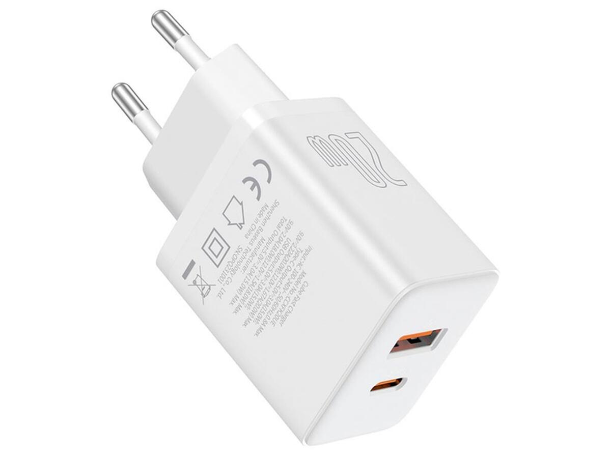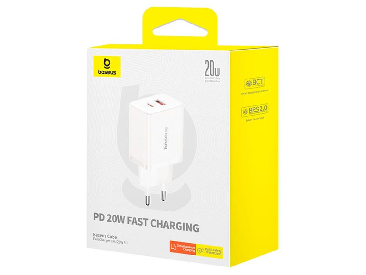 Адаптер сетевой Baseus Cube Fast Charger |1USB/1Type-C 20W/3A PD/QC| White