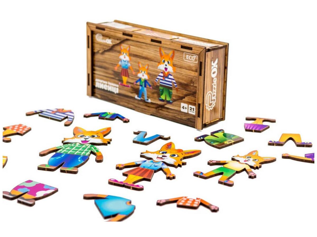 Эта деревянная игра-конструктор специально разработана для детей от 3 лет, чтобы развивать их творческие и моторные навыки. В комплекте находится деревянная упаковка с тремя отделениями, в которых спрятались фигурки лисичек – мама, папа и лисёнок. Ребенок сможет собирать эти фигурки самостоятельно, собирая их из нескольких безопасных деталей ярких цветов. Простота и привлекательность дизайна делает игру отличным выбором для малышей, а экологичный материал гарантирует безопасность и долговечность.