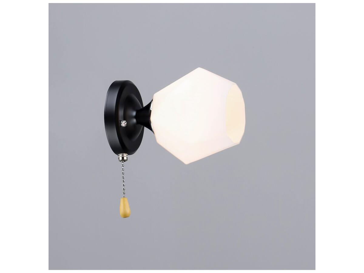 Бра оснащен стандартным цоколем Е27 и поддерживает лампы мощностью до 60 Вт, включая энергосберегающие и светодиодные варианты, что позволяет адаптировать освещение под индивидуальные потребности. Встроенный шнурковой выключатель обеспечивает удобство эксплуатации без необходимости устанавливать отдельный выключатель.
