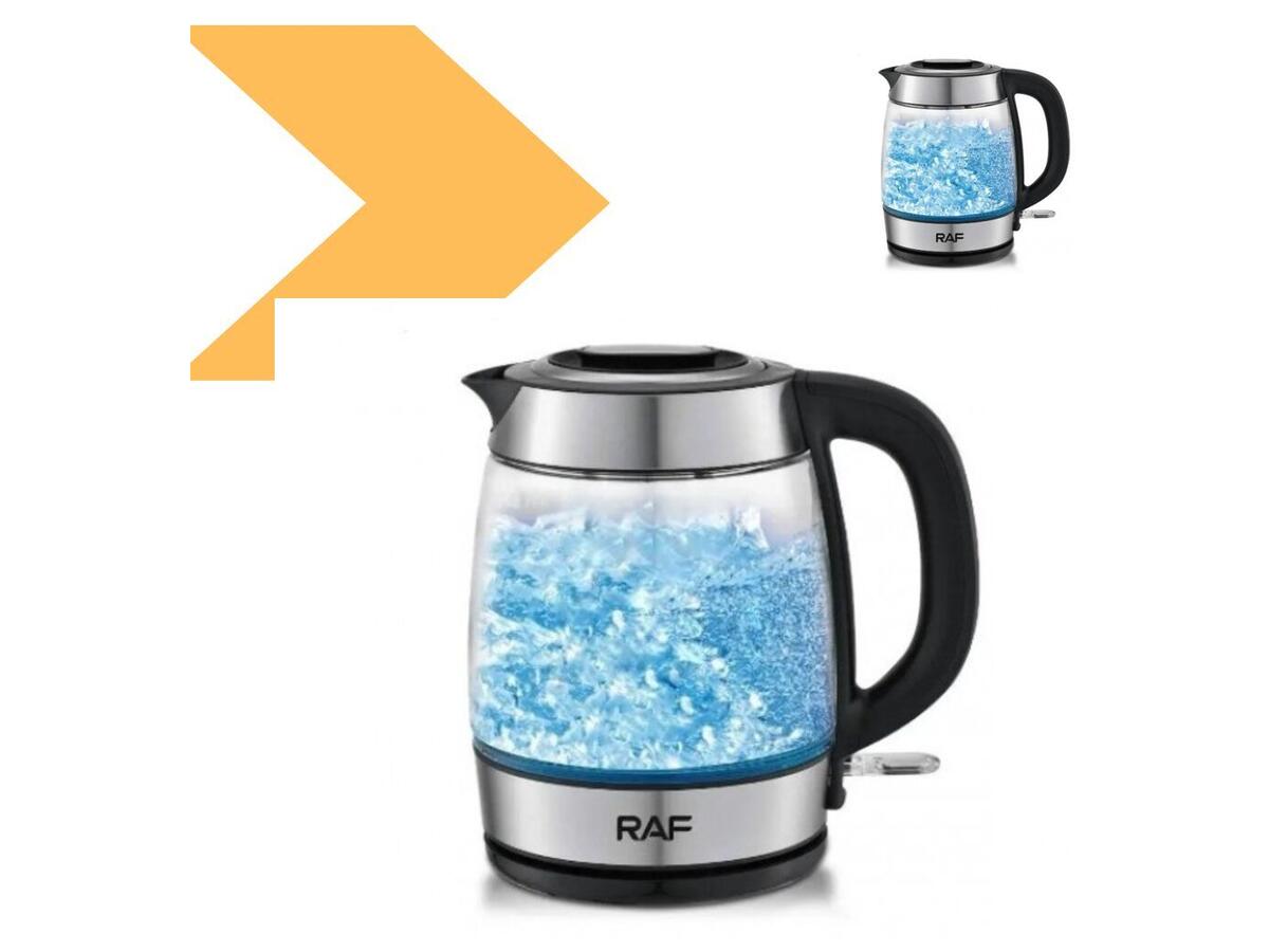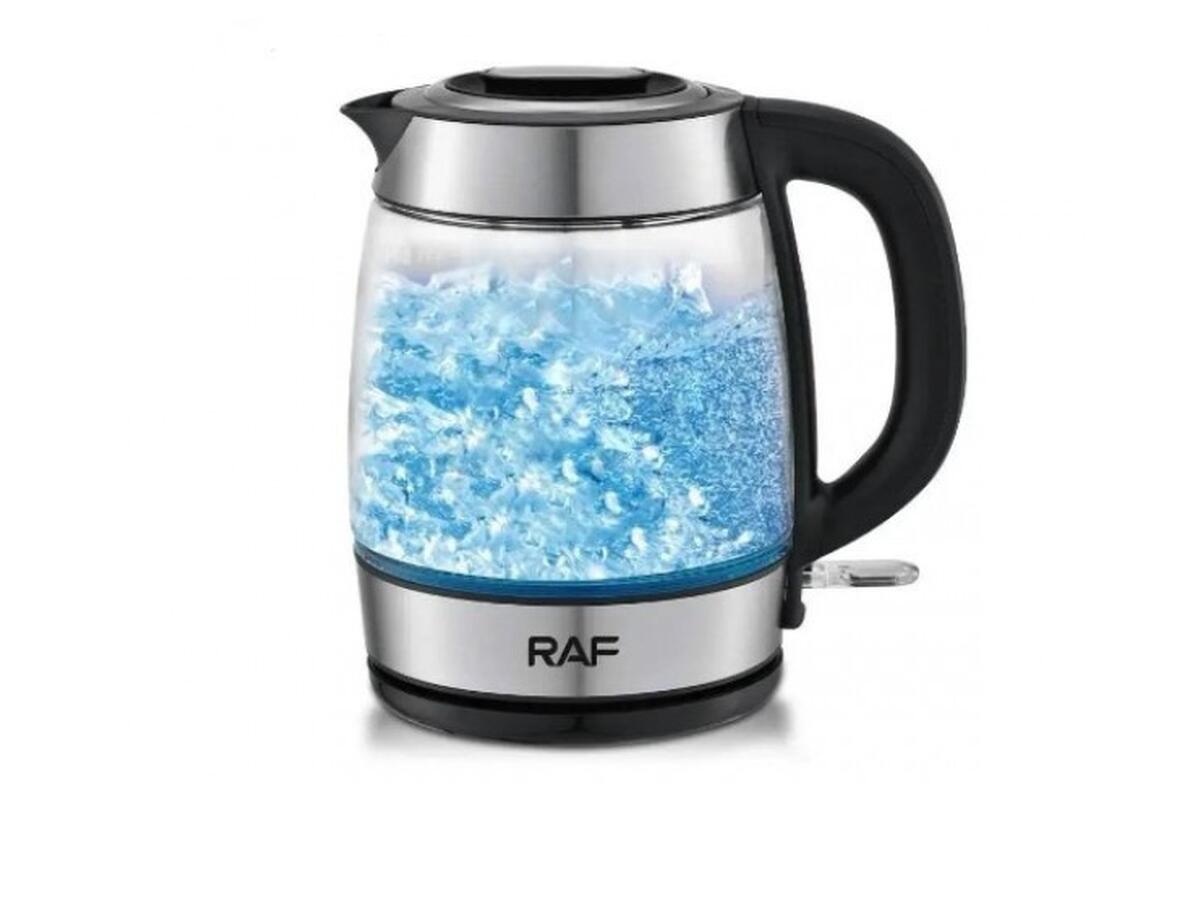 Ключевые слова: электрочайник стеклянный, чайник с подсветкой, быстрое кипячение воды, защита от перегрева, автоматическое выключение чайника, LED-подсветка, поворотная подставка, фильтр от накипи, RAF R-7946.
