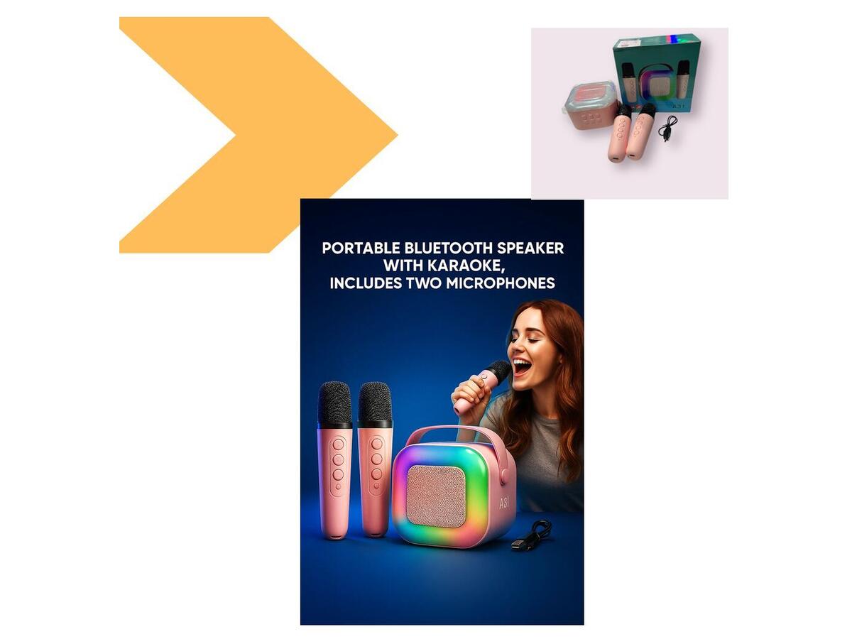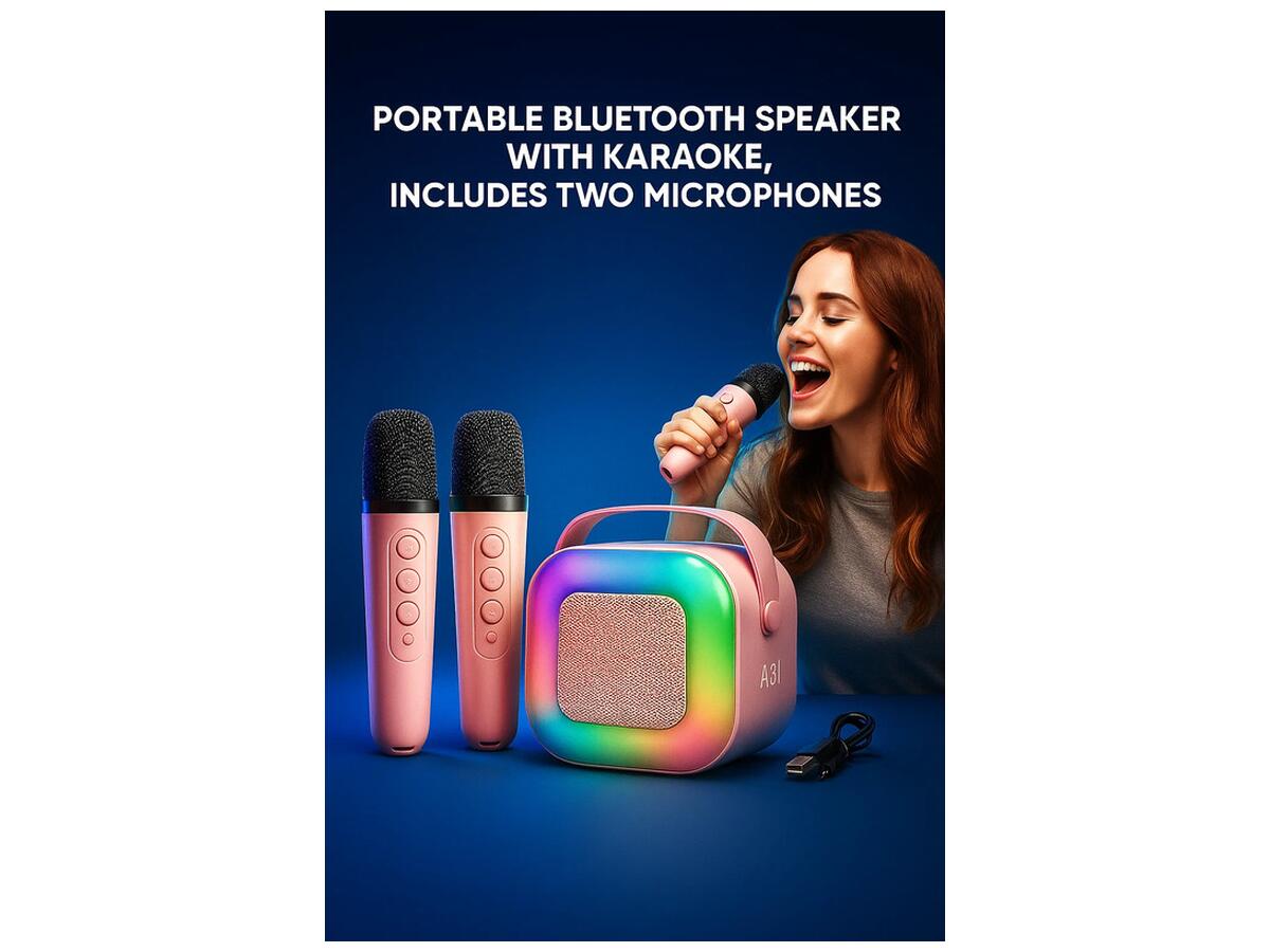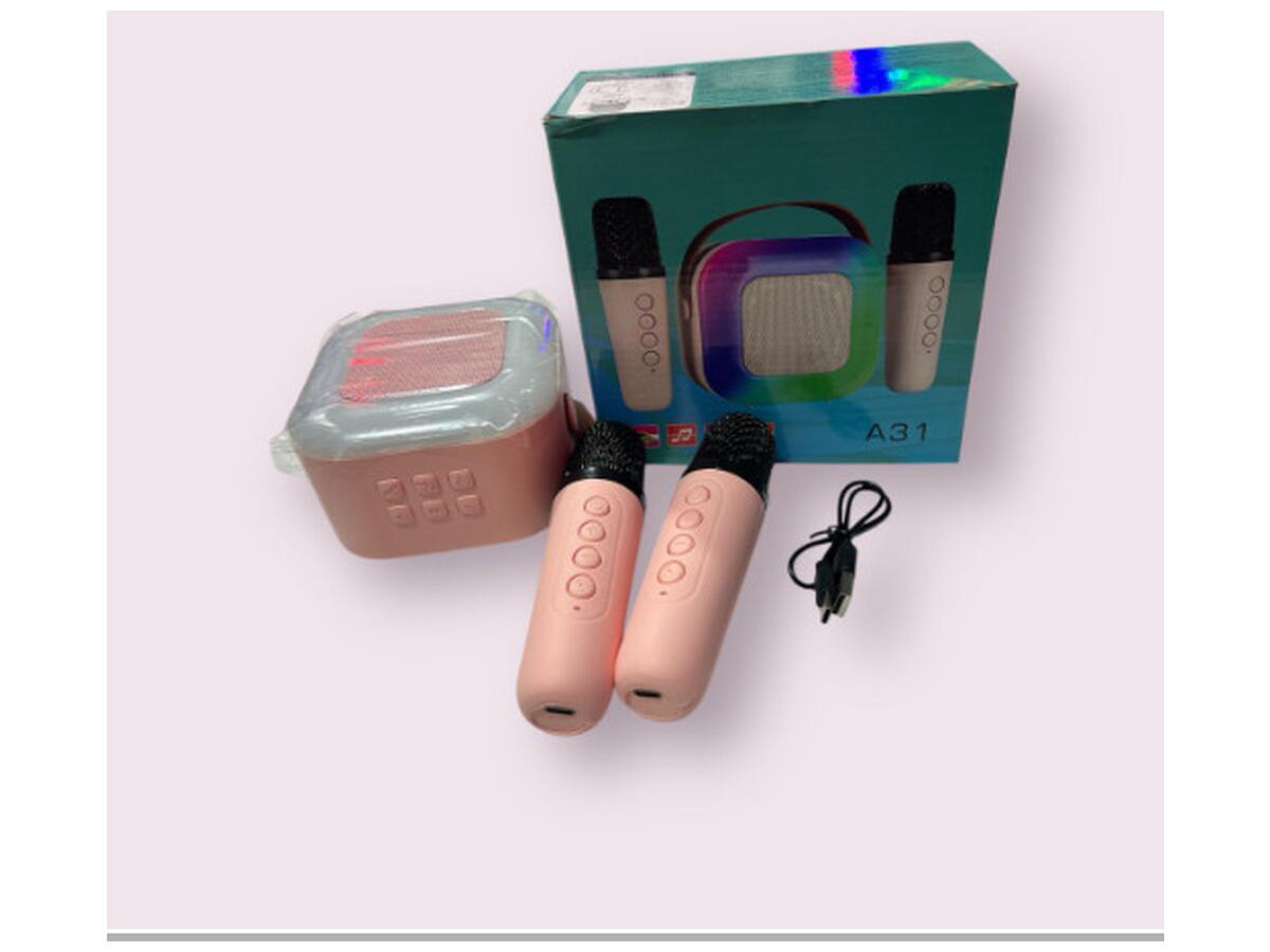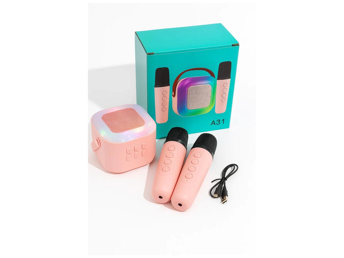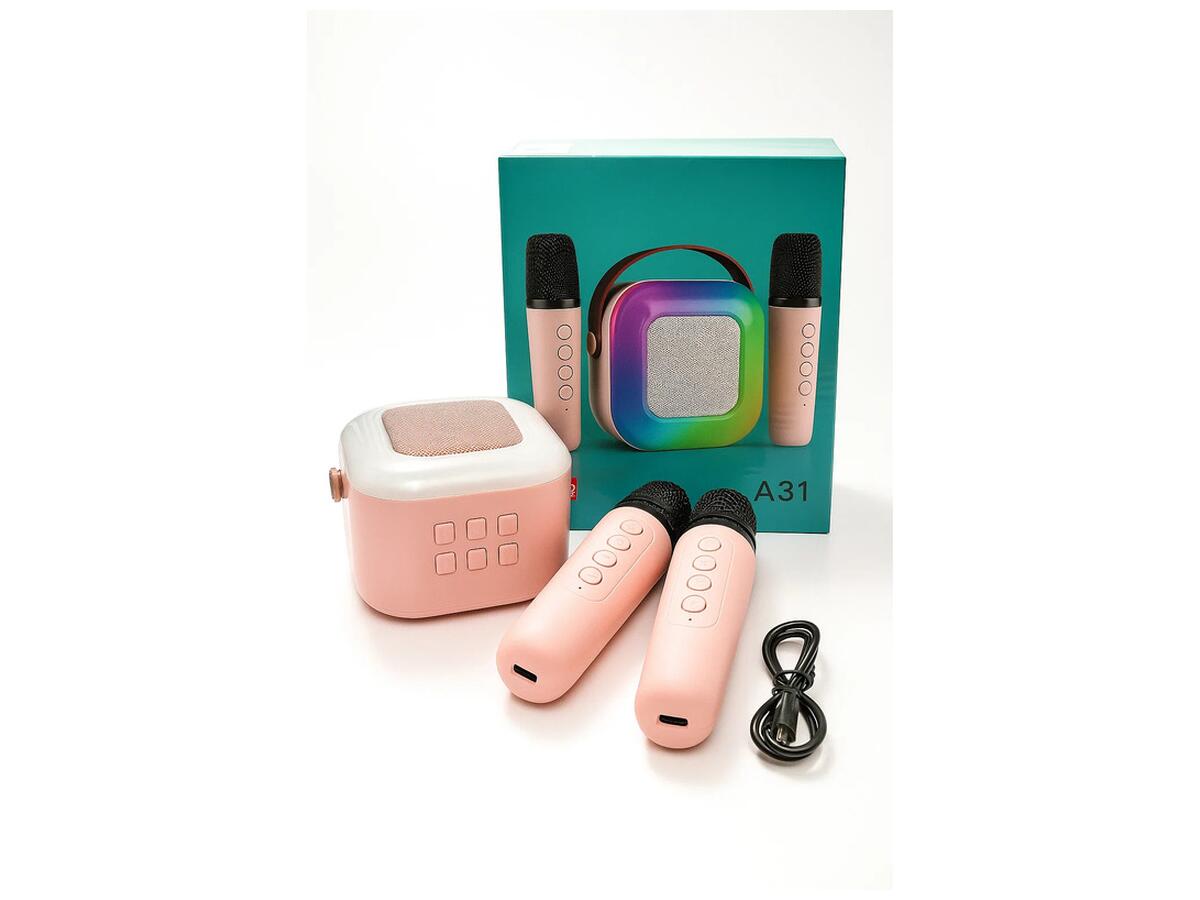Главное: Портативная Bluetooth колонка A31 с караоке комплектом и двумя микрофонами — идеальный выбор для музыкальных вечеринок, домашнего отдыха и активного отдыха на природе. Она предоставляет возможность наслаждаться любимыми песнями, а также совместно исполнять их с друзьями и семьей.