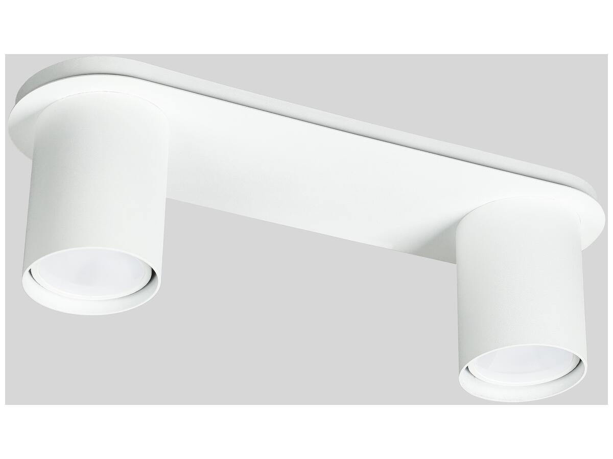 Эта компактная и стильная потолочная люстра оснащена двумя галогеновыми гнездами GU10, подходящими для ламп мощностью до 40 Вт. Металлические цилиндрические плафоны белого цвета гармонично сочетаются с корпусом, создавая современный лаконичный образ. Люстра идеально подходит для помещений площадью около 6 м? с невысокими потолками (до 2,5 м), обеспечивая равномерное освещение вниз и в стороны.