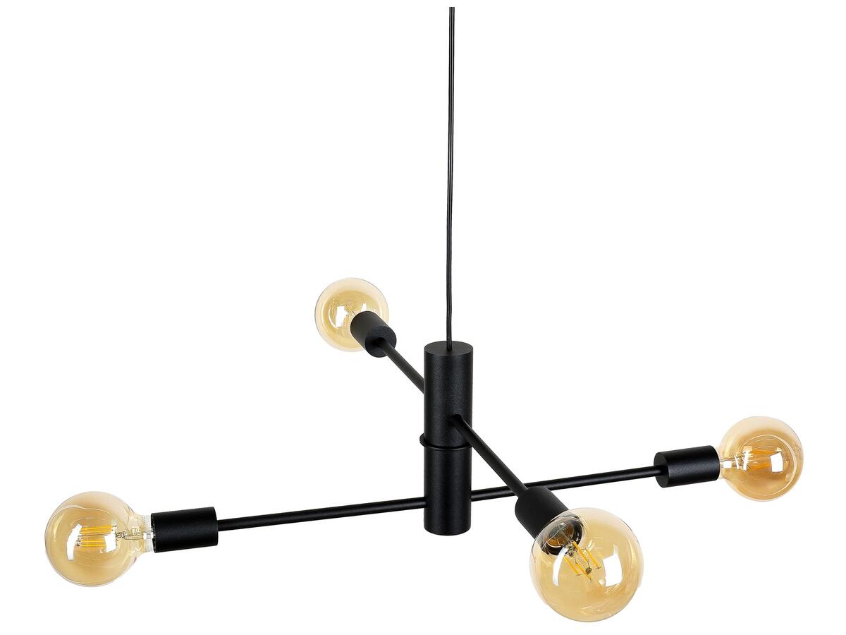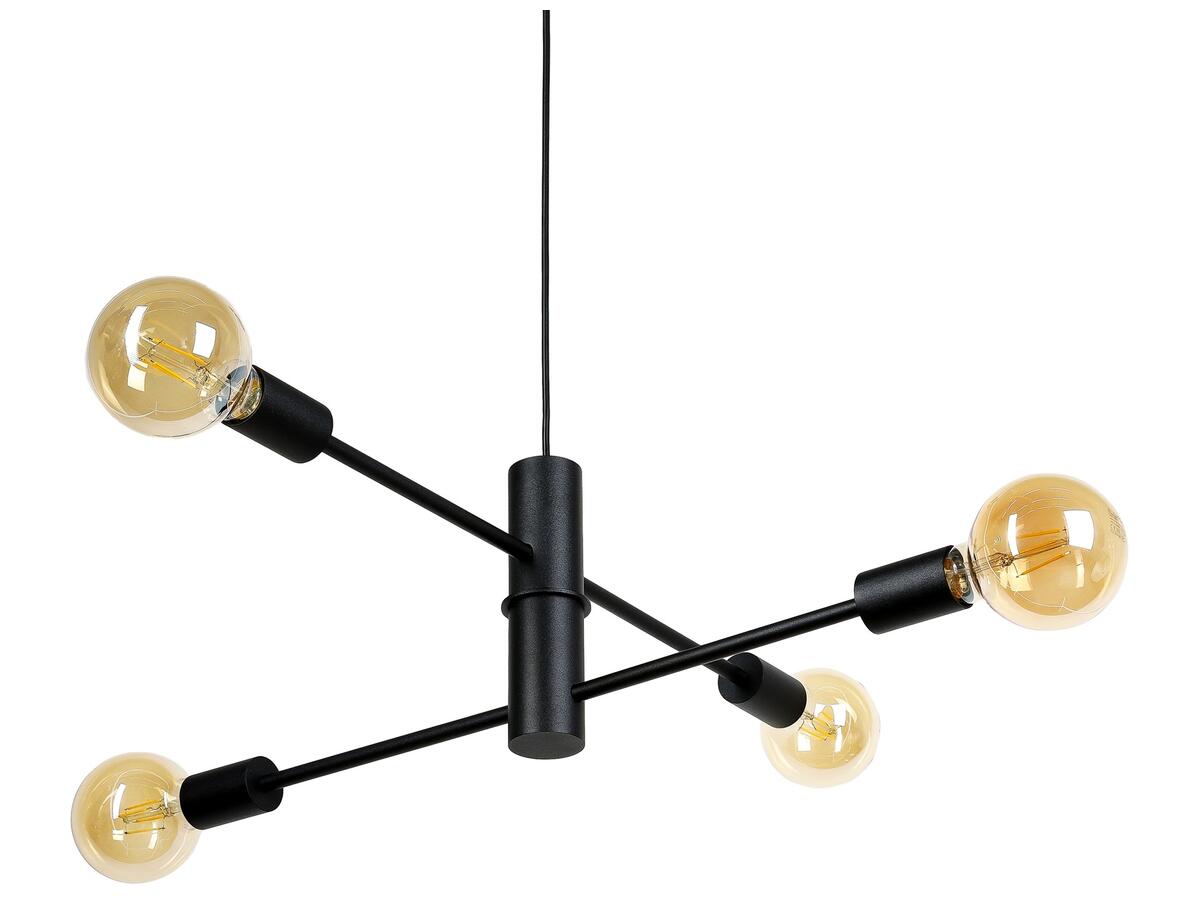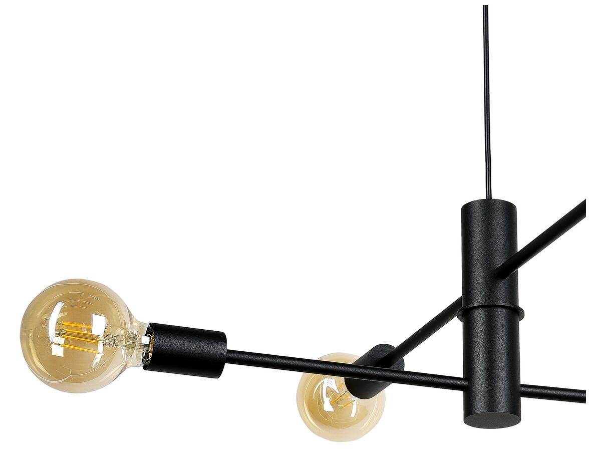 Подвесная люстра (подвесной светильник) Atmolight Orbi Star E27 P4 635/205 Black черный Современная подвесная люстра в стиле Лофт на четыре лампы без плафонов. Подвесная люстра состоит из двух сегментов, на каждом из которых есть пара патронов E27. Благодаря сегментной конструкции лучи с лампочками размещены на двух уровнях и под разными углами относительно друг друга. Это обеспечивает более равномерное и рассеянное освещение, а также футуристический дизайн, напоминающий схему орбит планет. Используются наиболее распространенные лампы с цоколем E27. Этот светильник лучше всего подходит для освещения помещения площадью 12 м?, отлично подходит для высоких потолков. Высота регулируется, что позволяет адаптировать подвес под разные пространства и потребности. Светильник идеально впишется в интерьер гостиной, кухни, столовой, бара, кафе и ресторана. Он придаст интерьеру эстетику и создаст уютную атмосферу. Характеристики Тип цоколя - E27 (стандарт) Количество источников света - 4 (лампочки в комплект не входят) Тип используемой лампы: светодиодная, накаливания, энергосберегающая Максимальная мощность лампочки - 60 Вт Длина провода - 1000 мм Диаметр крышки крепления - 90 мм Ширина люстры - 610 мм Длина люстры - 610 мм Высота люстры (без провода) - 205 мм Материал каркаса - металл Тип крепления - скоба Цвет каркаса - черный Напряжение, В: 220 Назначение - универсальные Стиль: Лофт, современная Тип люстры - подвесные