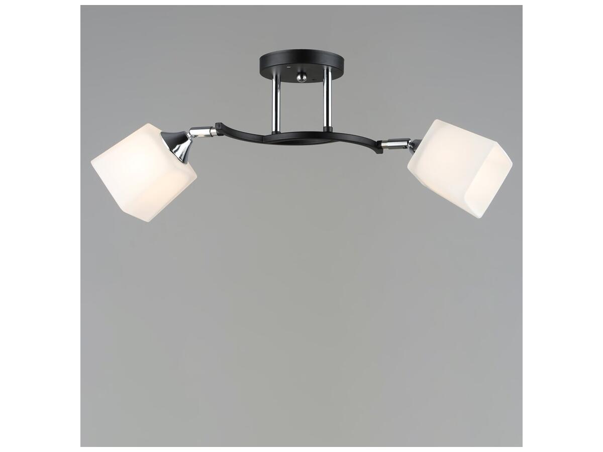Современная потолочная люстра на две лампы со стеклянными плафонами, оборудованными поворотным механизмом. Эта люстра лучше всего подойдет для помещений с общей площадью 6 м8, при использовании лампочек 6 Вт (LED) или 60 Вт (стандартная). Эта потолочная люстра - образец элегантности и современного дизайна, который придаст вашему помещению особый шарм.