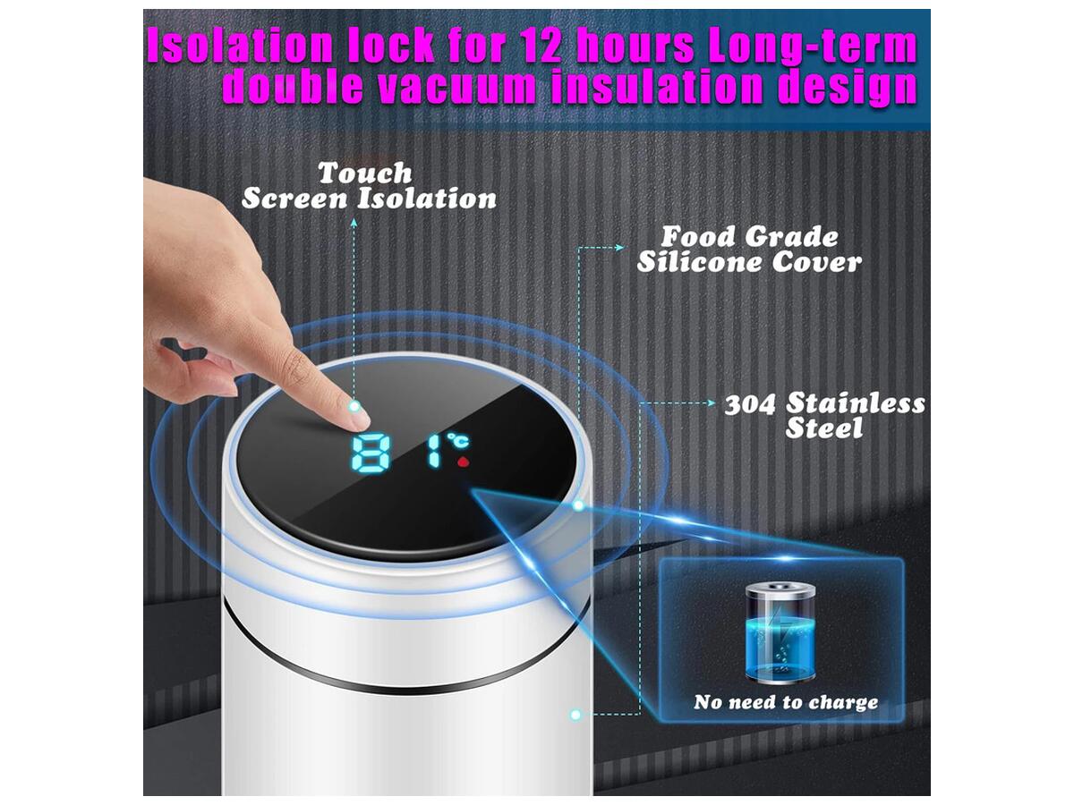 Не упустите возможность насладиться качественными напитками в дороге с нашим сенсорным термосом LED с дисплеем температуры!
