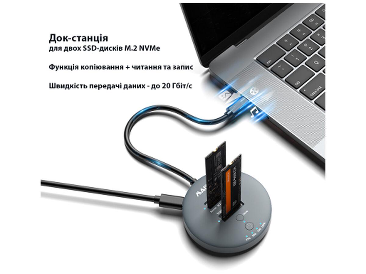- Скорость передачи данных: для двух SSD - USB3.2 Gen2x1 *2 SSD - до 10 Гбит/с, для одного SSD - USB3.2 Gen2x2 *1 SSD - до 20 Гбит/с.
