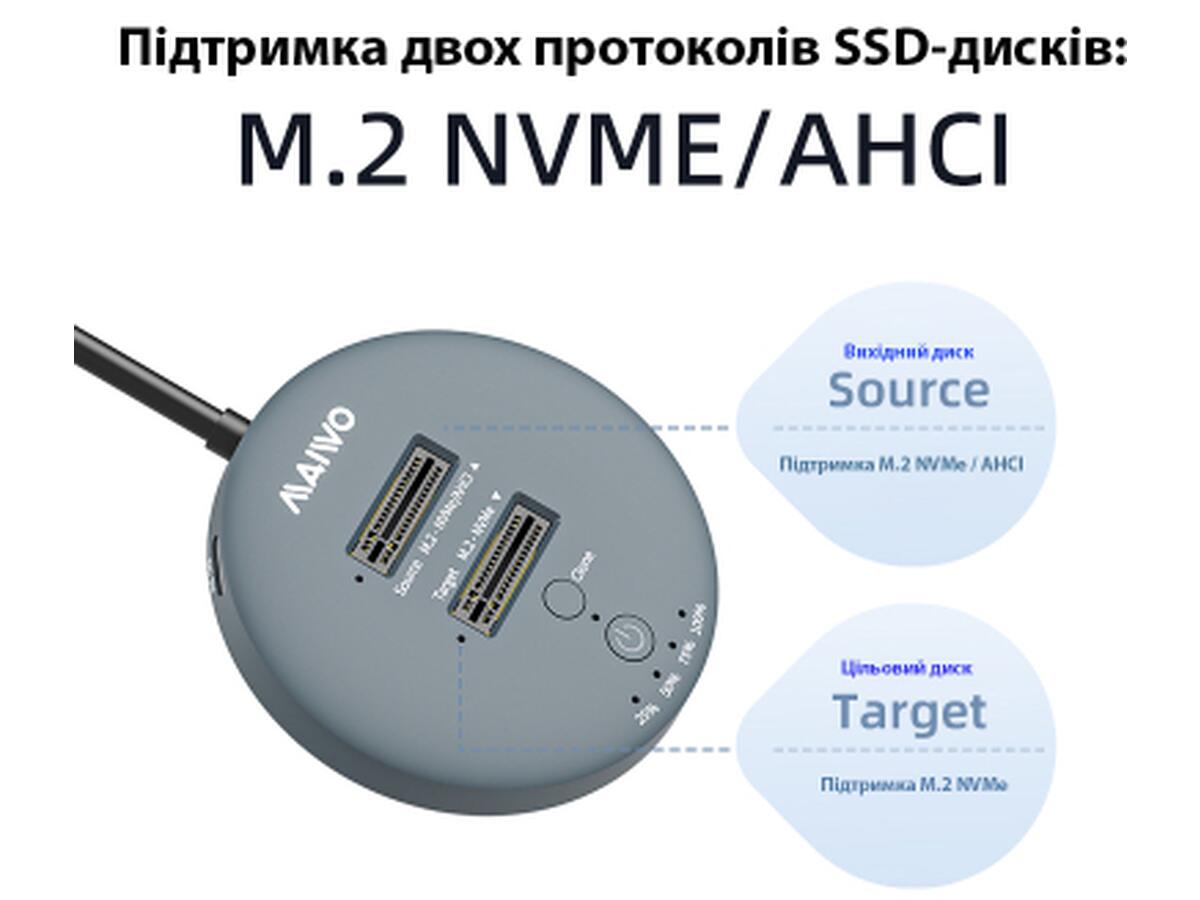 - Поддерживаемые протоколы SSD: M.2 NVMe и AHCI SSD (AHCI SSD - только как исходний диск "Source").