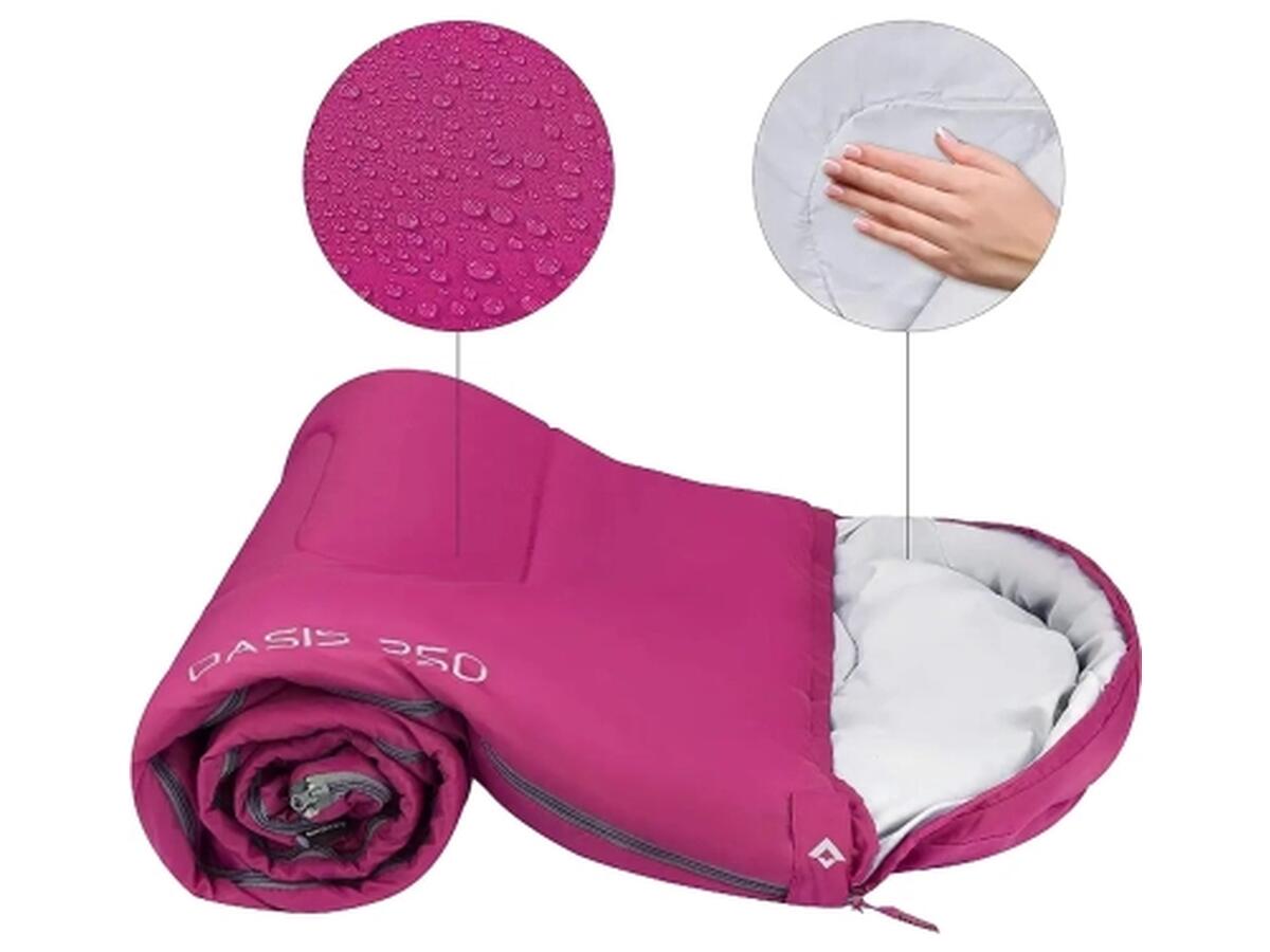 Спальный мешок KingCamp Oasis 250 – комфортный и тёплый, отлично подходит для лета, весны и осени в качестве спальника, автомобильных путешествий или коротких походов. Отлично удерживает температуру. Внутренний материал приятен к коже и не удерживает влагу, отводя ее во внешние слои.
