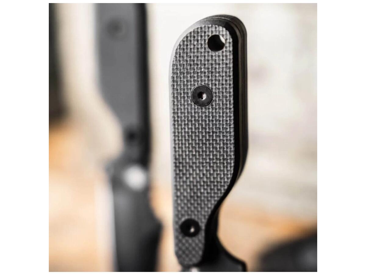 Full Tang конструкция обеспечит достаточную устойчивость во время тяжелых задач на EDC и аутдоре. Накладки рукояти изготовлены из стеклотекстолита G10 для надежного хвата даже влажными руками. На торце предусмотрено отверстие под темляк.