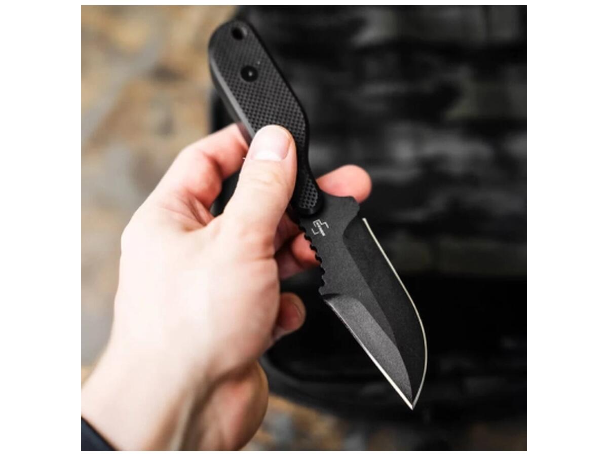 Boker Plus Kagat - это тактический фикс, созданный Boker в сотрудничестве с экспертом филиппинских боевых искусств Фрэнком Дело-младшим. Клинок изготовлен из углеродистой стали 1095 с порошковым черным покрытием, которое подчеркивает тактический характер ножа и обеспечивает дополнительную защиту от коррозии. Насечки на обухе в сочетании с профилем Harpoon обеспечат более точный и контролируемый рез и прокол.