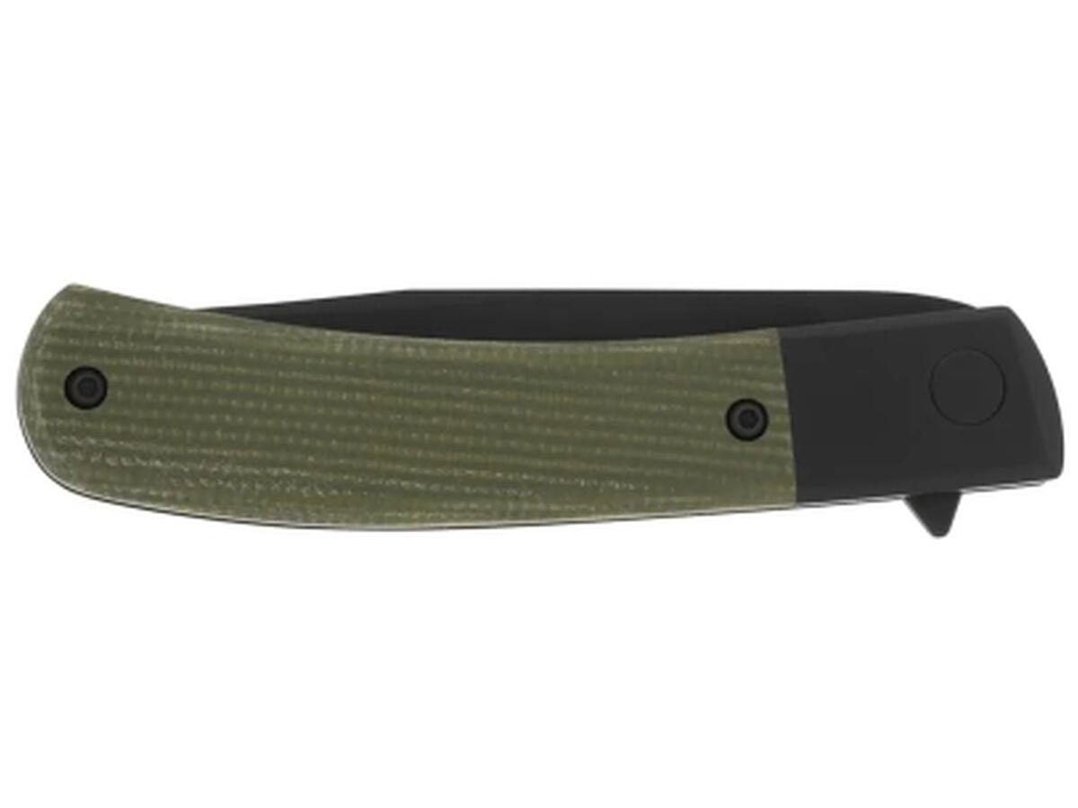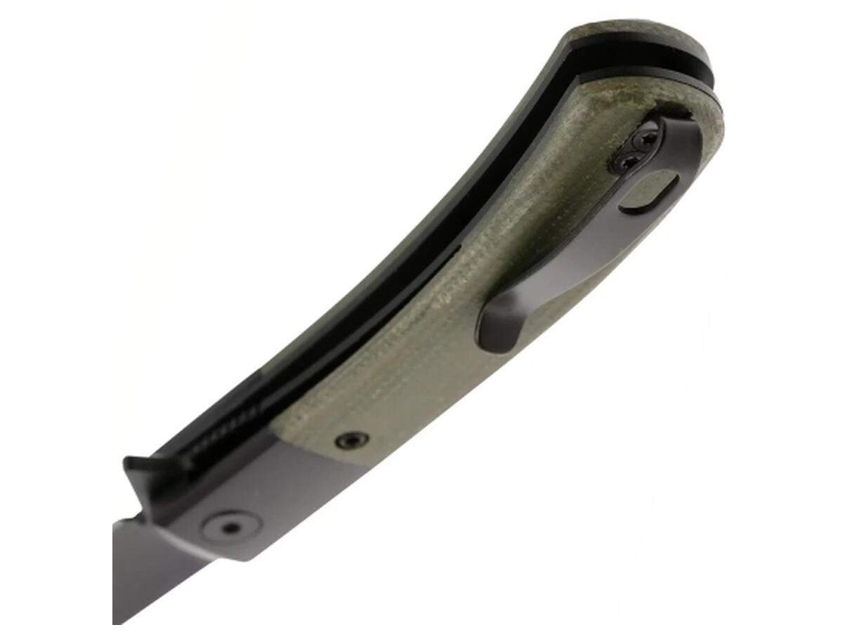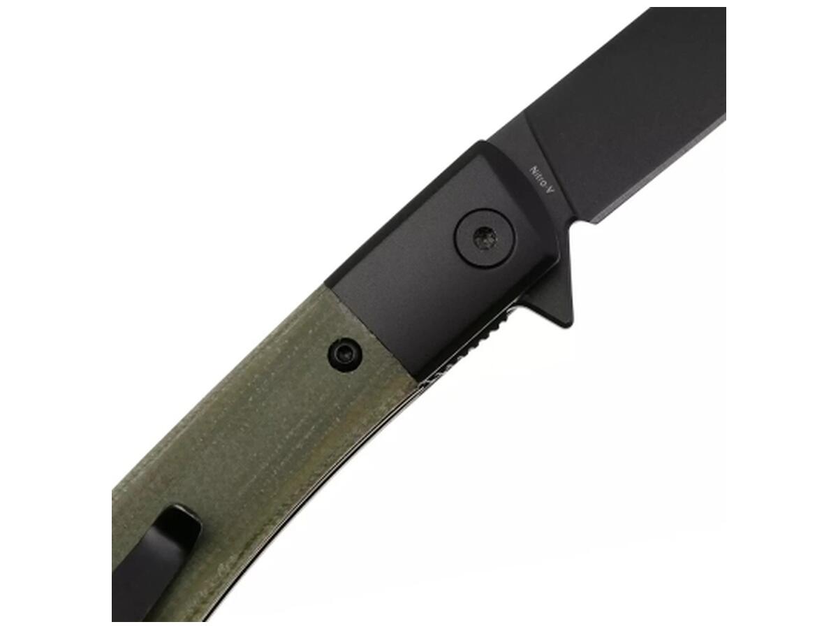 Рукоятка инструмента произведена из зеленой Микарты и имеет черный больстер, чем гармонично дополняет дизайн всего ножа.