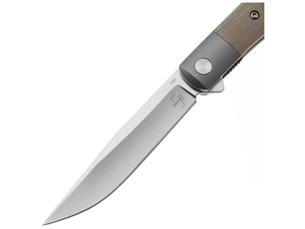 Boker Plus Modern Trapper Uno обходится без заднего больстера и использует передний больстер с титановым покрытием и накладками на рукоятке из серой микарты, которые приятны на ощупь. Вместо зазубрины для ногтей и скользящего соединения "замка-без-замка", в джентльменском ноже используется флипперное открытие и замок Liner Lock для открывания и закрывания шарикоподшипникового лезвия типа Drop-Point, изготовленного из стали марки Nitro-V. Плоский поворотный винт, матовая двухцветная отделка лезвия и элегантный зажим Tip-Up (r) стильно завершают аккуратный вид карманного ножа. Классика может быть такой современной!