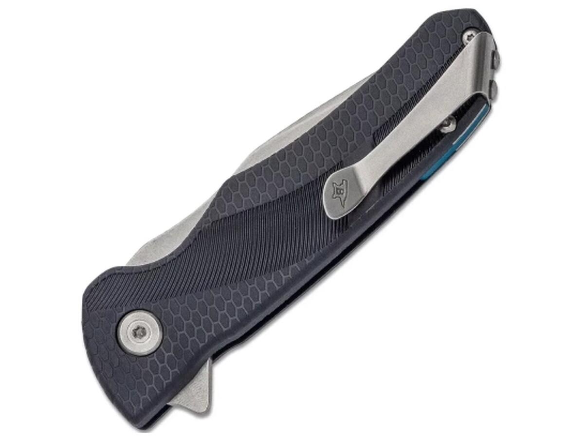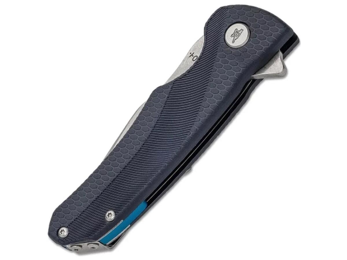 Рукоять изготовлена из прочного GFN (стеклонаполненного нейлона) — лёгкого, устойчивого к механическим нагрузкам материала. Благодаря продуманной форме и текстурированной поверхности нож удобно лежит в руке. Открытие клинка осуществляется при помощи флиппера, а надёжный лайнерлок фиксирует его в рабочем положении.